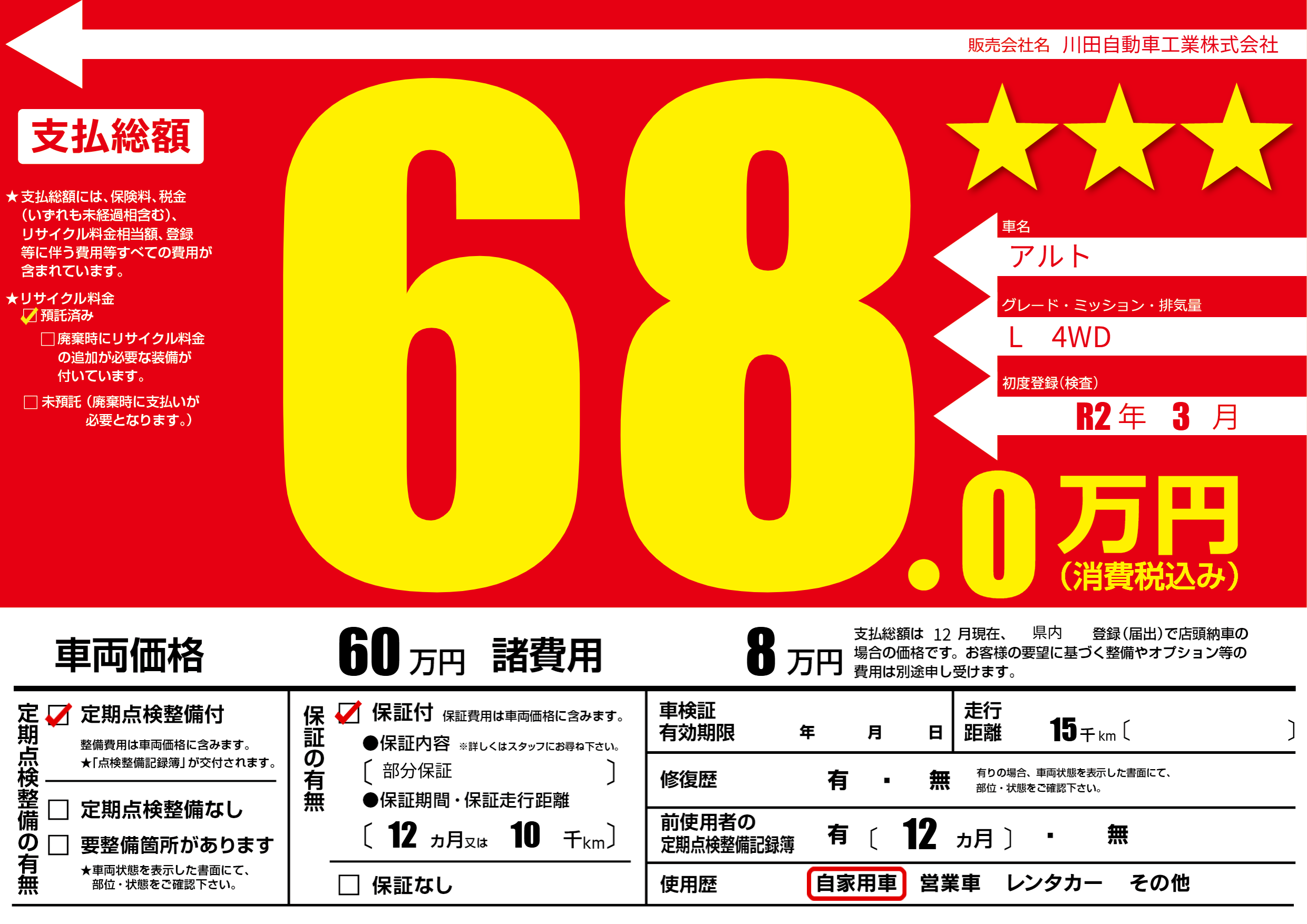 保証付き 保証内容(部分保証) 12ヶ月または(10)千kmまで |
