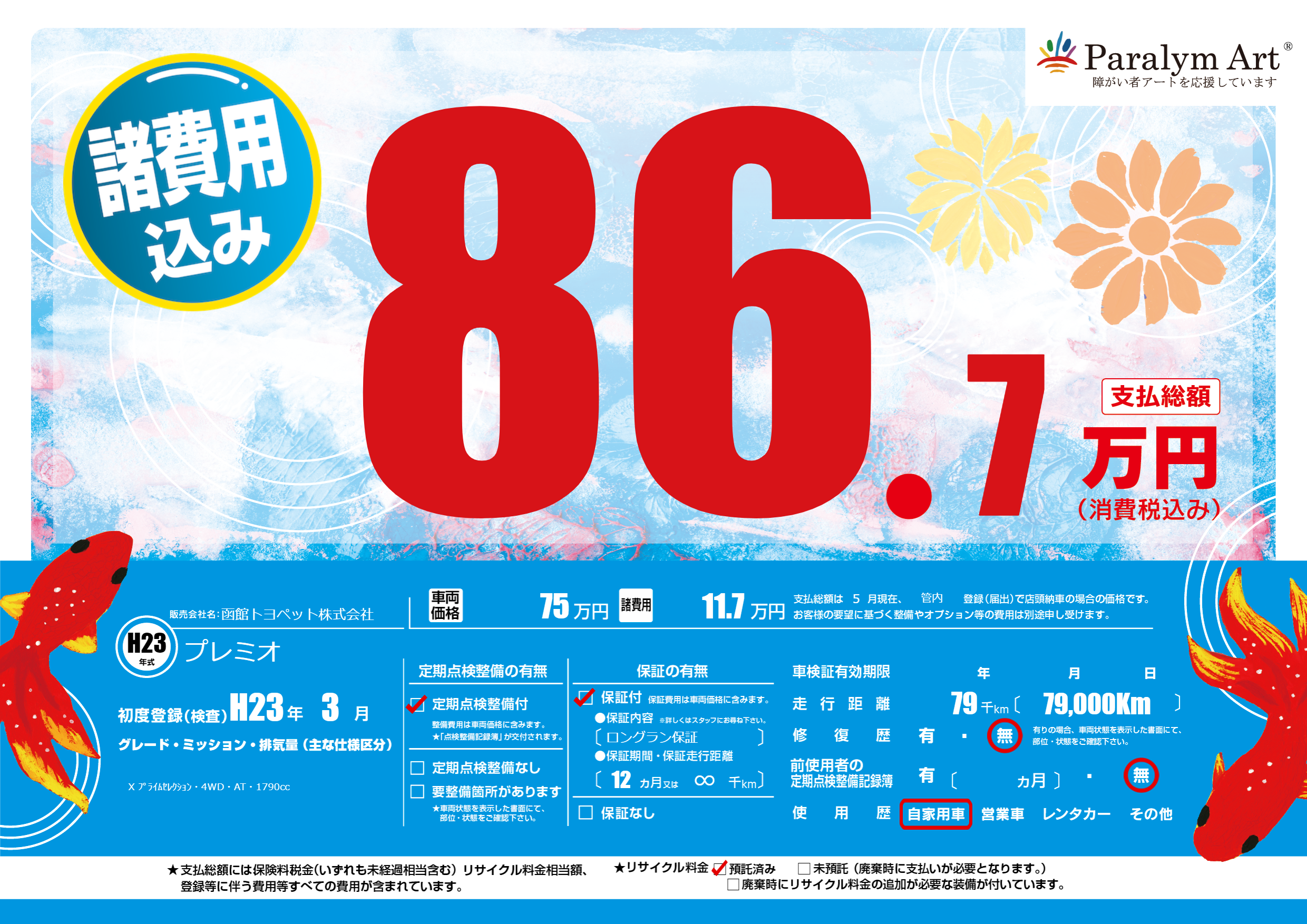 | 車名 | プレミオ | グレード ミッション 排気量 |
