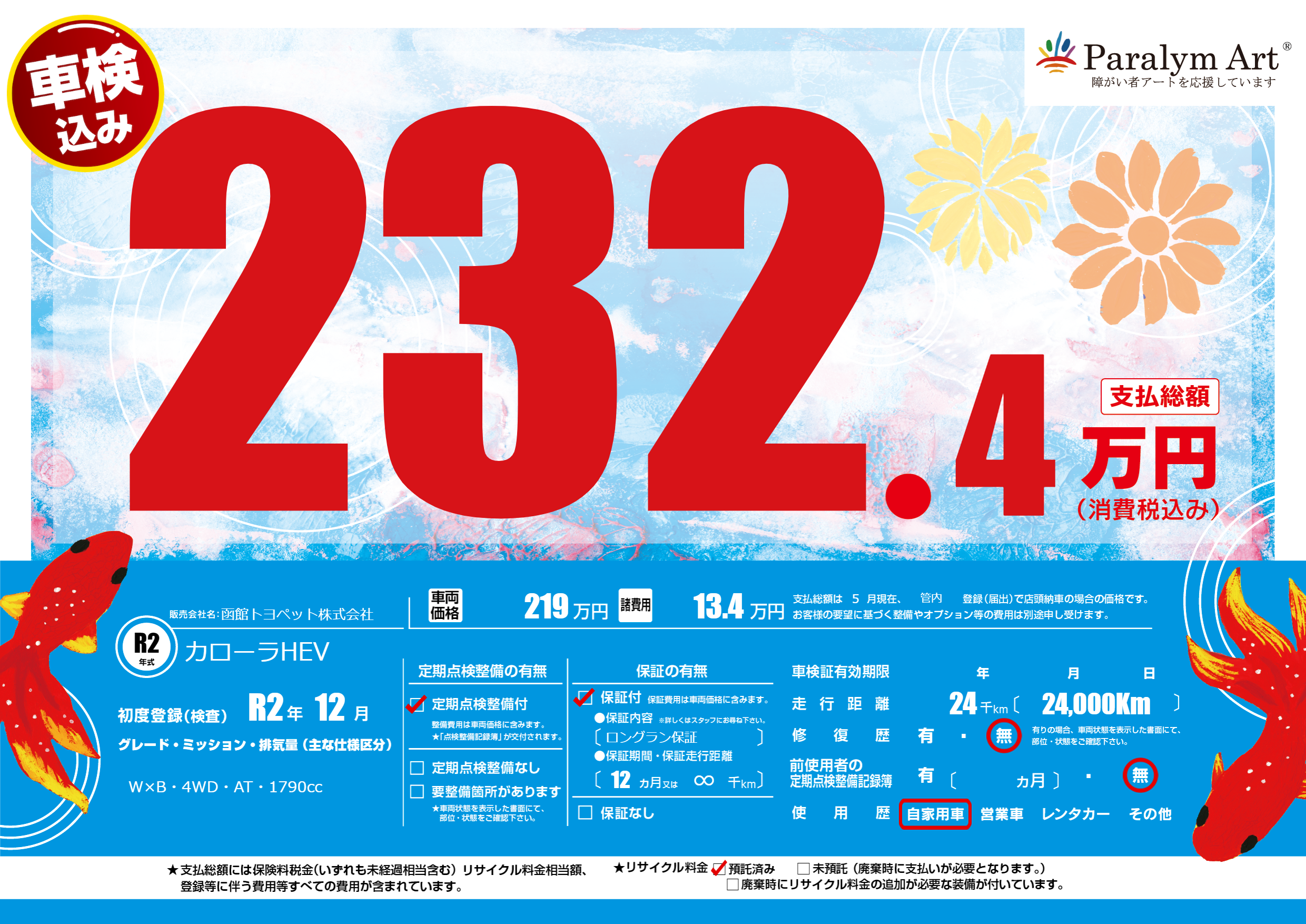 | 走行キロ | 2.4万km | 初年度登録 | R2年12月 |