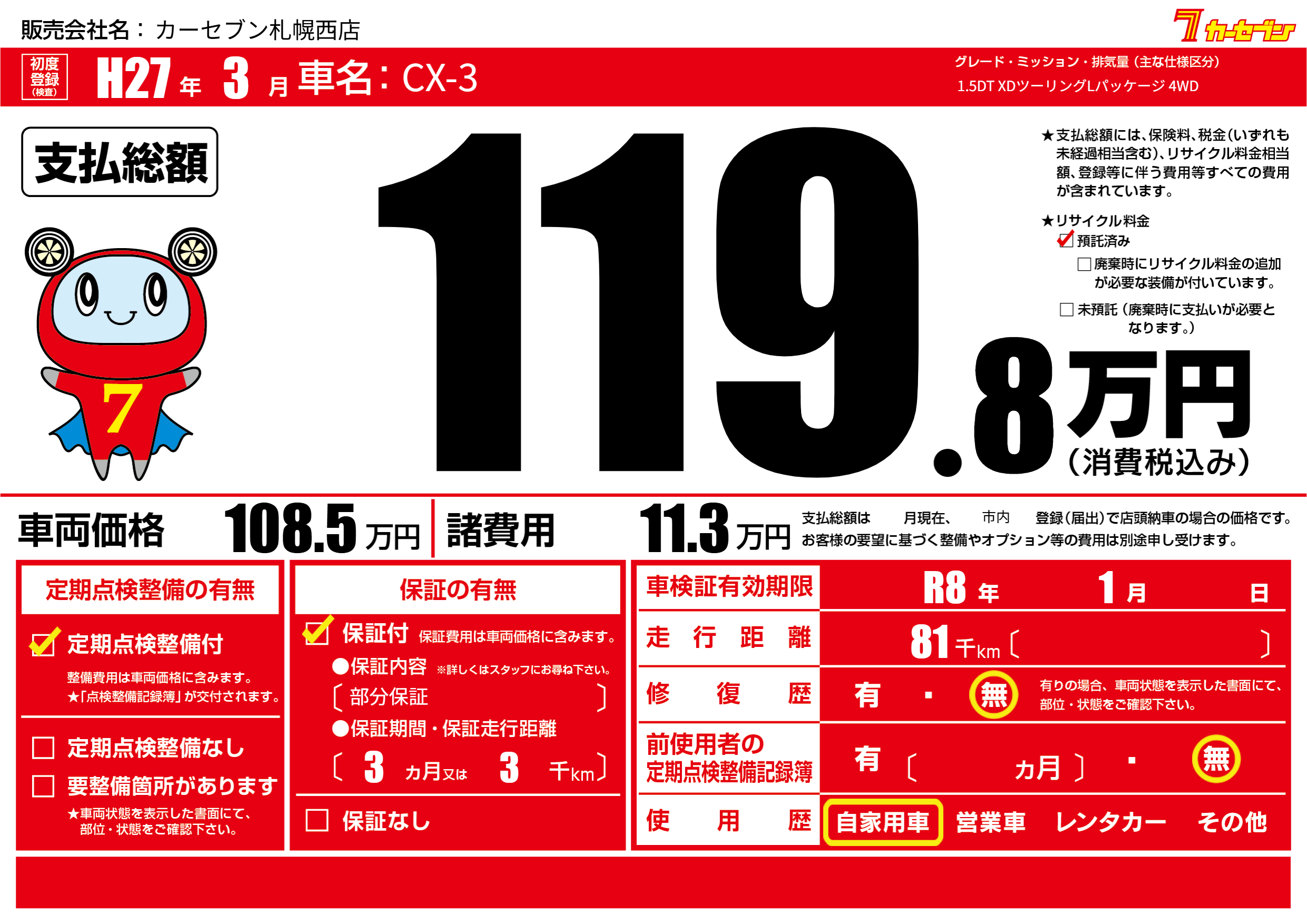 | 車名 | CX-3 | グレード ミッション 排気量 |