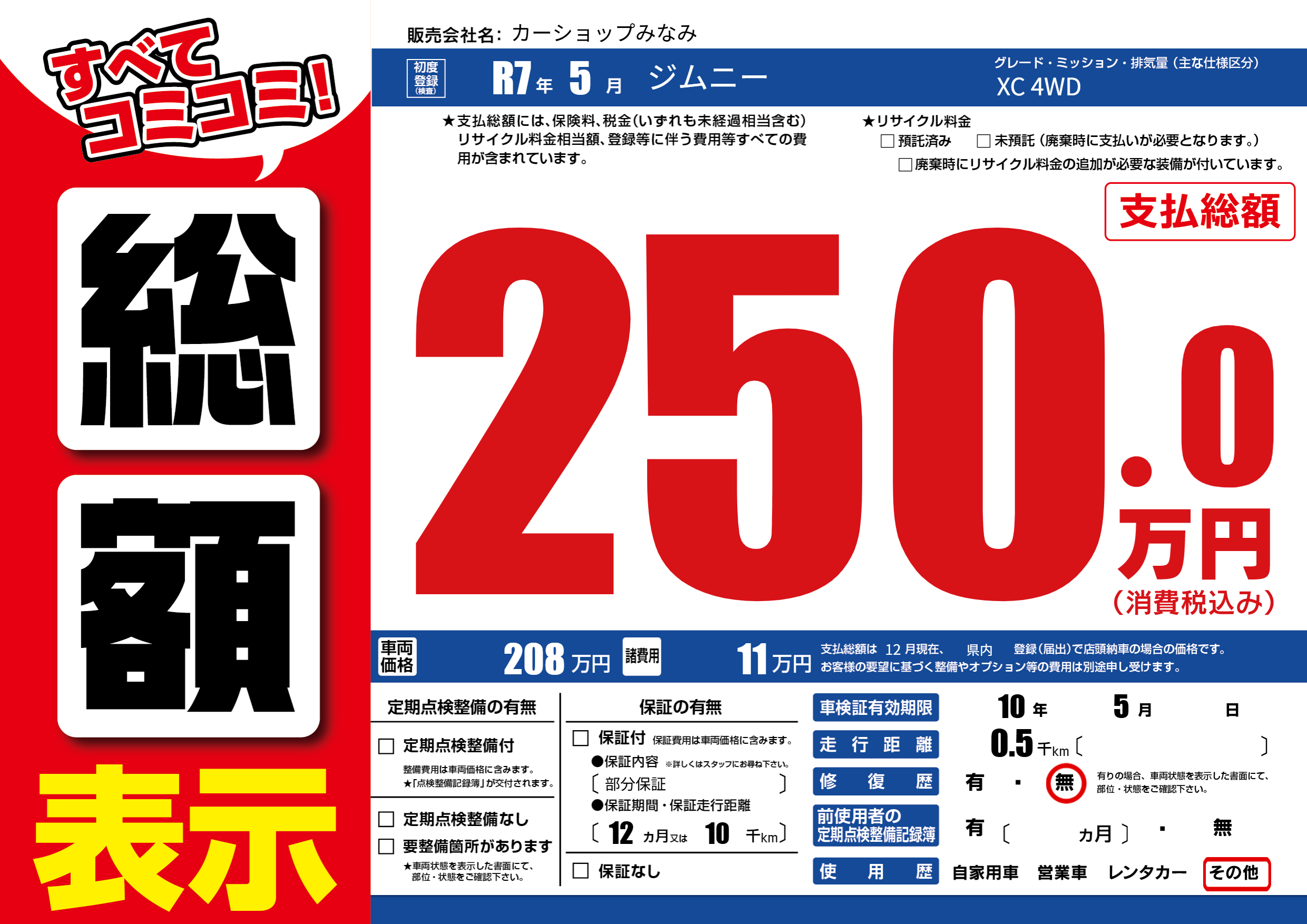 | 車名 | ジムニー | グレード ミッション 排気量 |