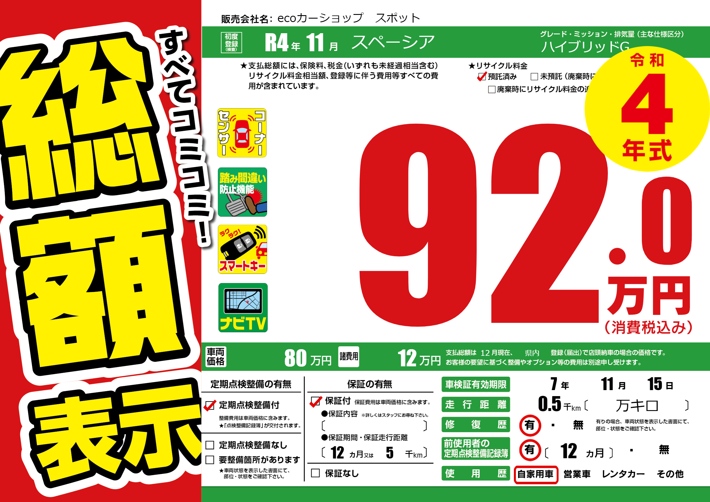 | 車検制限 | 7年 11月 15日 | ||