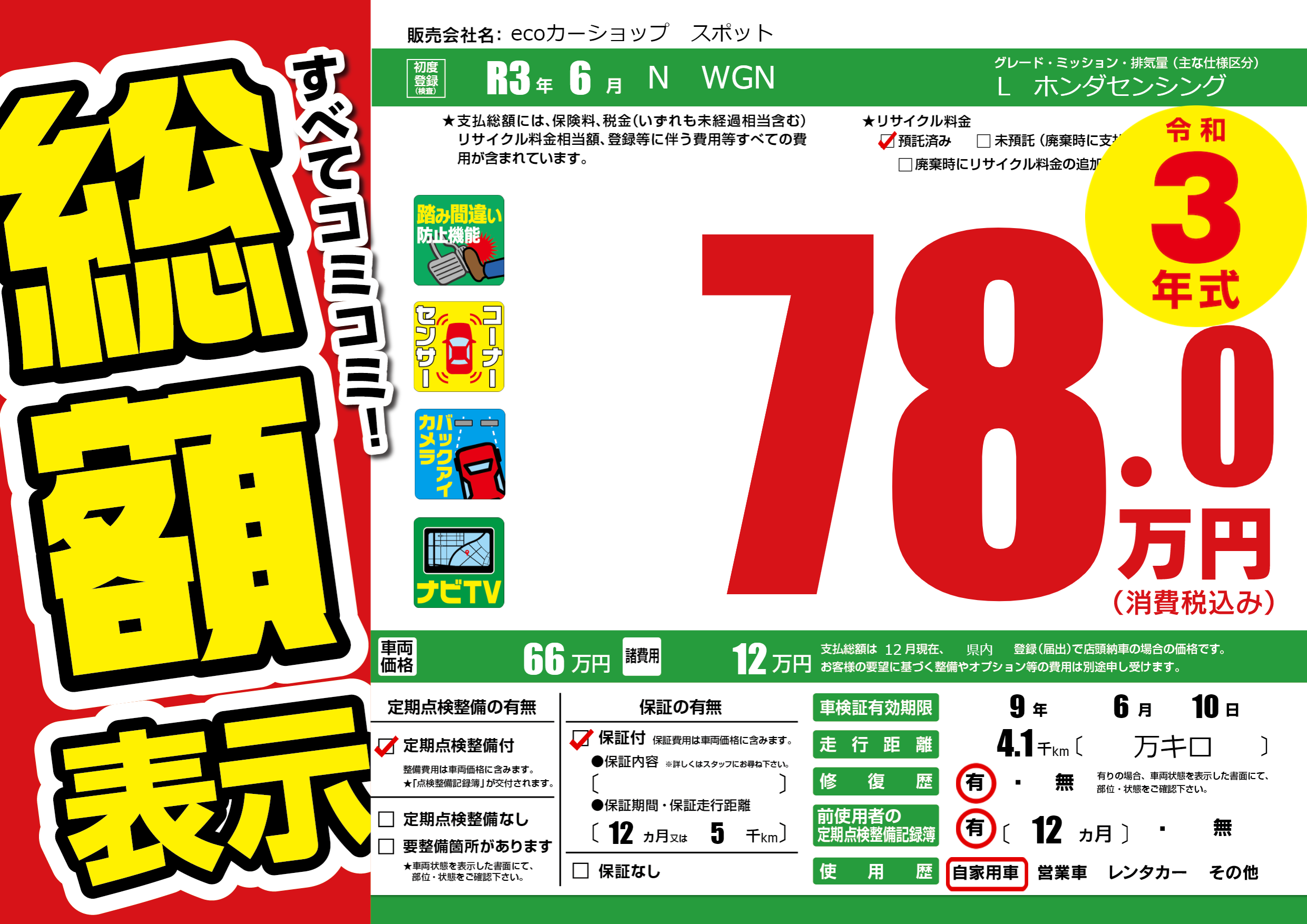 | 車検制限 | 9年 6月 10日 | ||