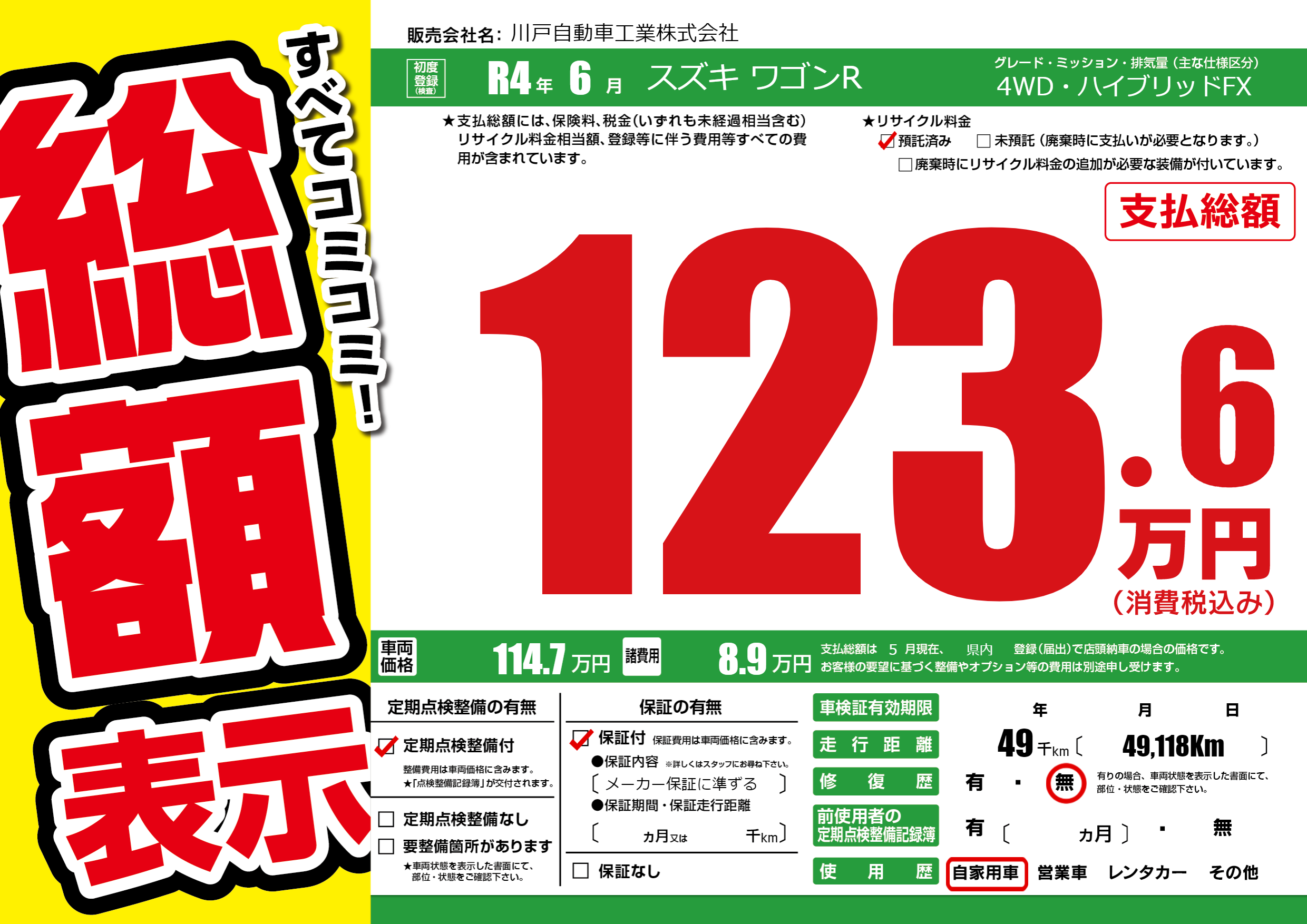 | 走行キロ | 4.9万km | 初年度登録 | R4年6月 |
