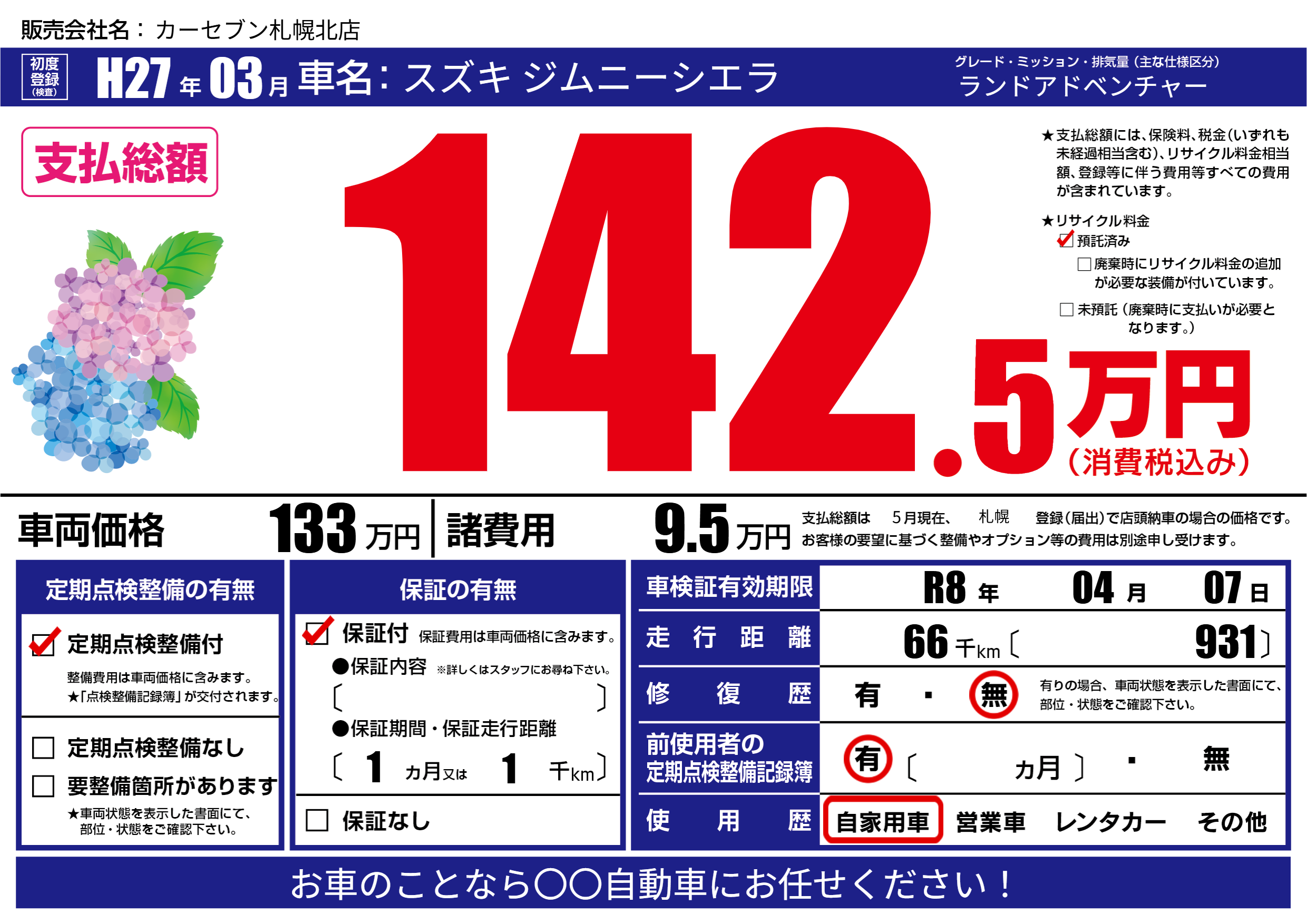 なし | 車検制限 | R8年04月07月 |