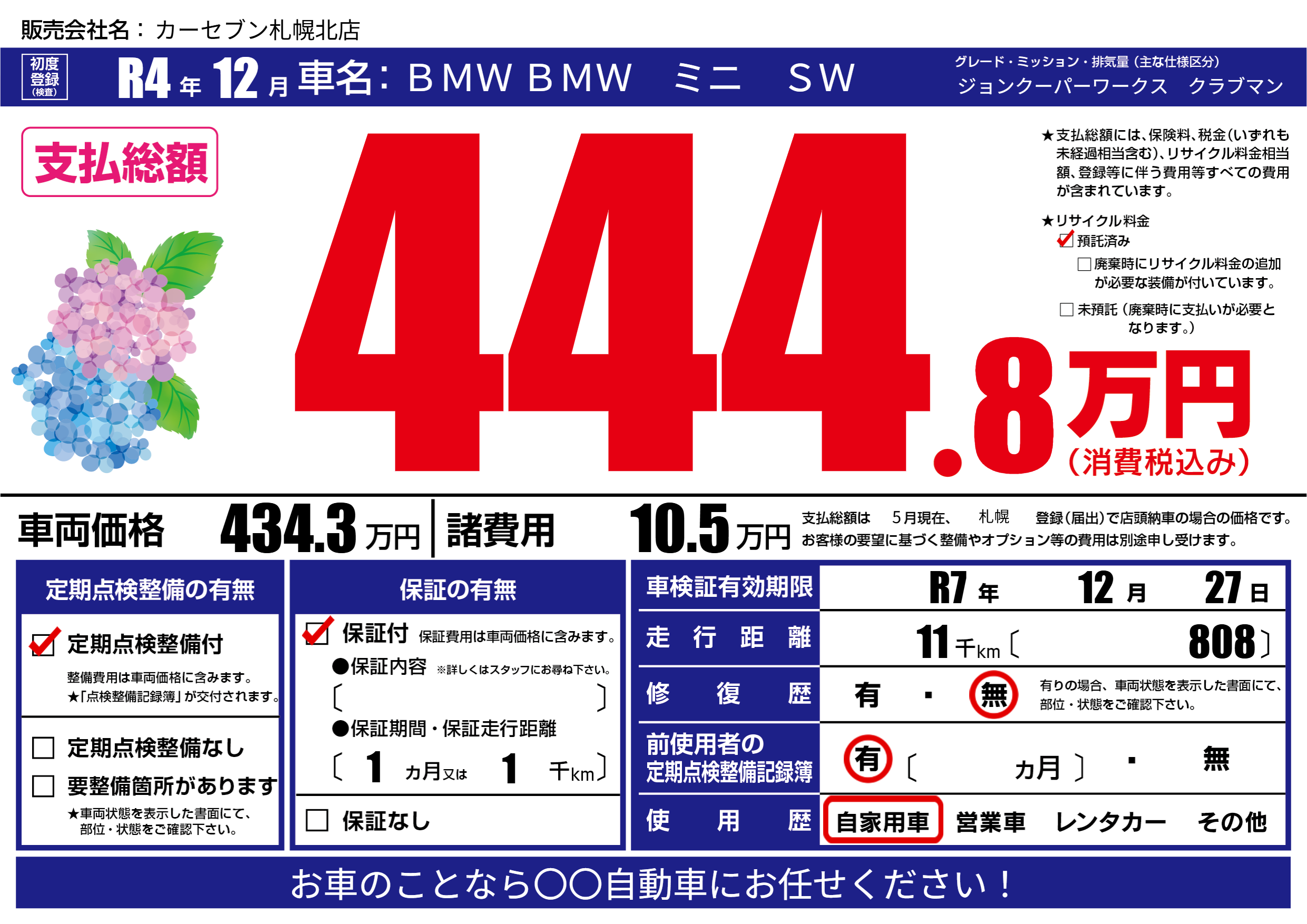 | 車名 | BMW BMW ミニ SW | グレード ミッション 排気量 |