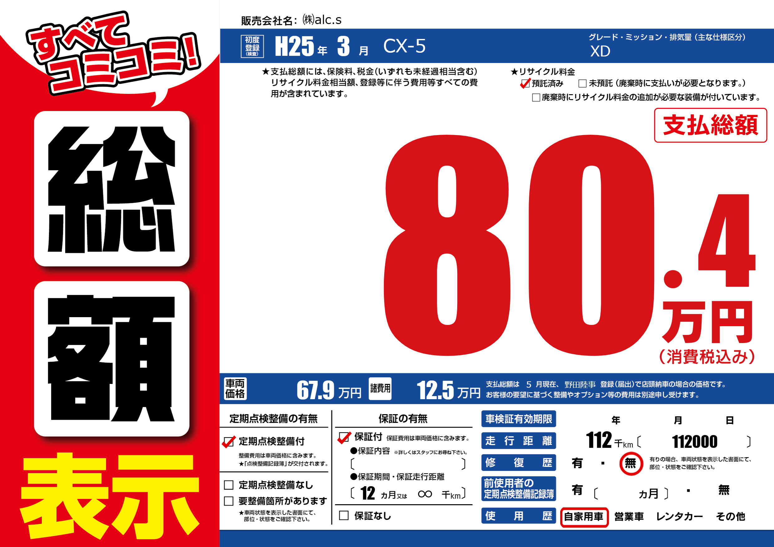 | 車名 | CX-5 | グレード ミッション 排気量 |