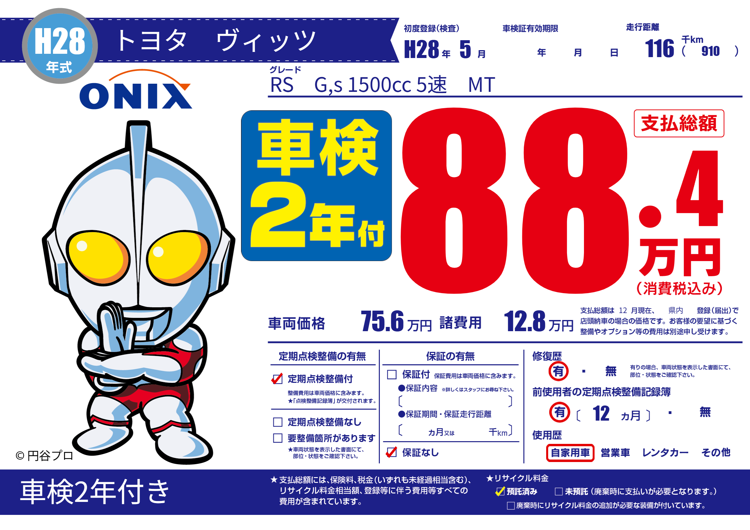 | 走行キロ | 11.6万km | 初年度登録 | H28年5月 |