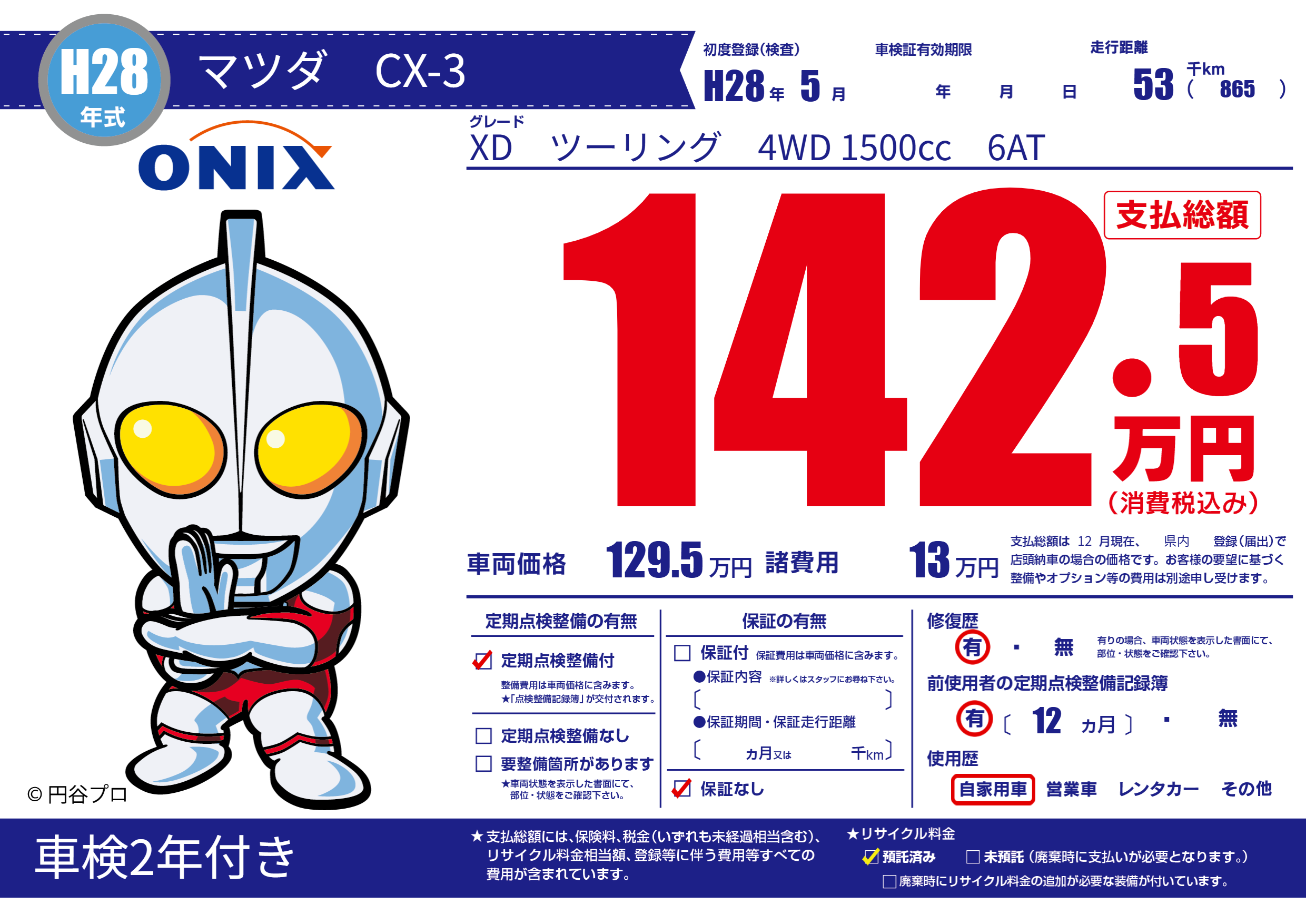 | 車名 | マツダ CX-3 | グレード ミッション 排気量 |