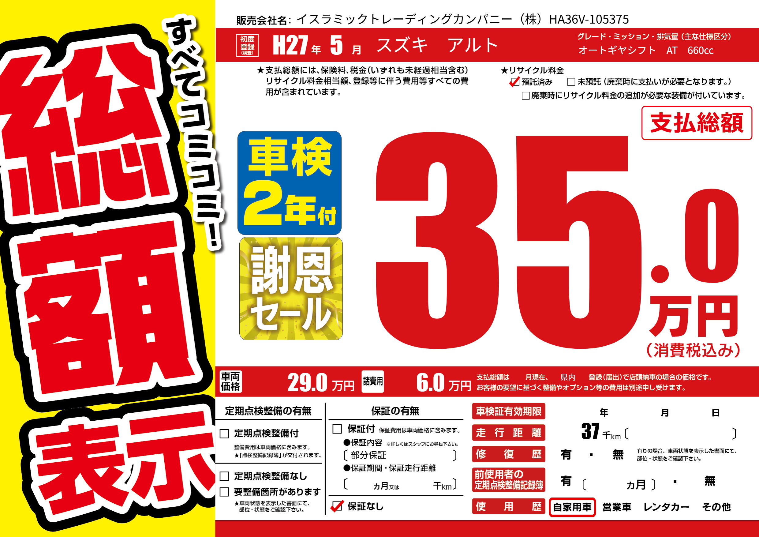 | 走行キロ | 3.7万km | ||