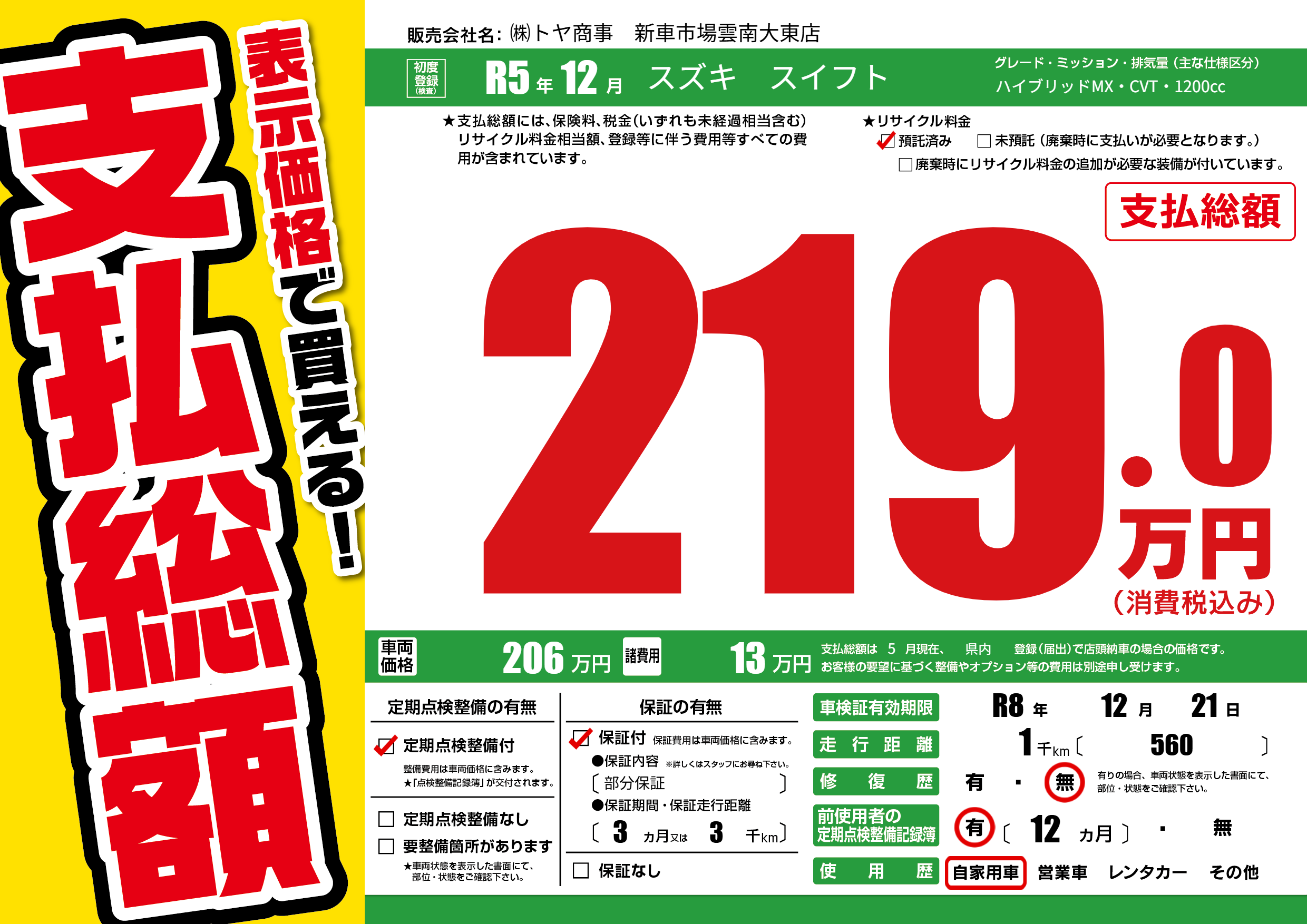 | 定期点検整備 | 定期点検整備あり | ||