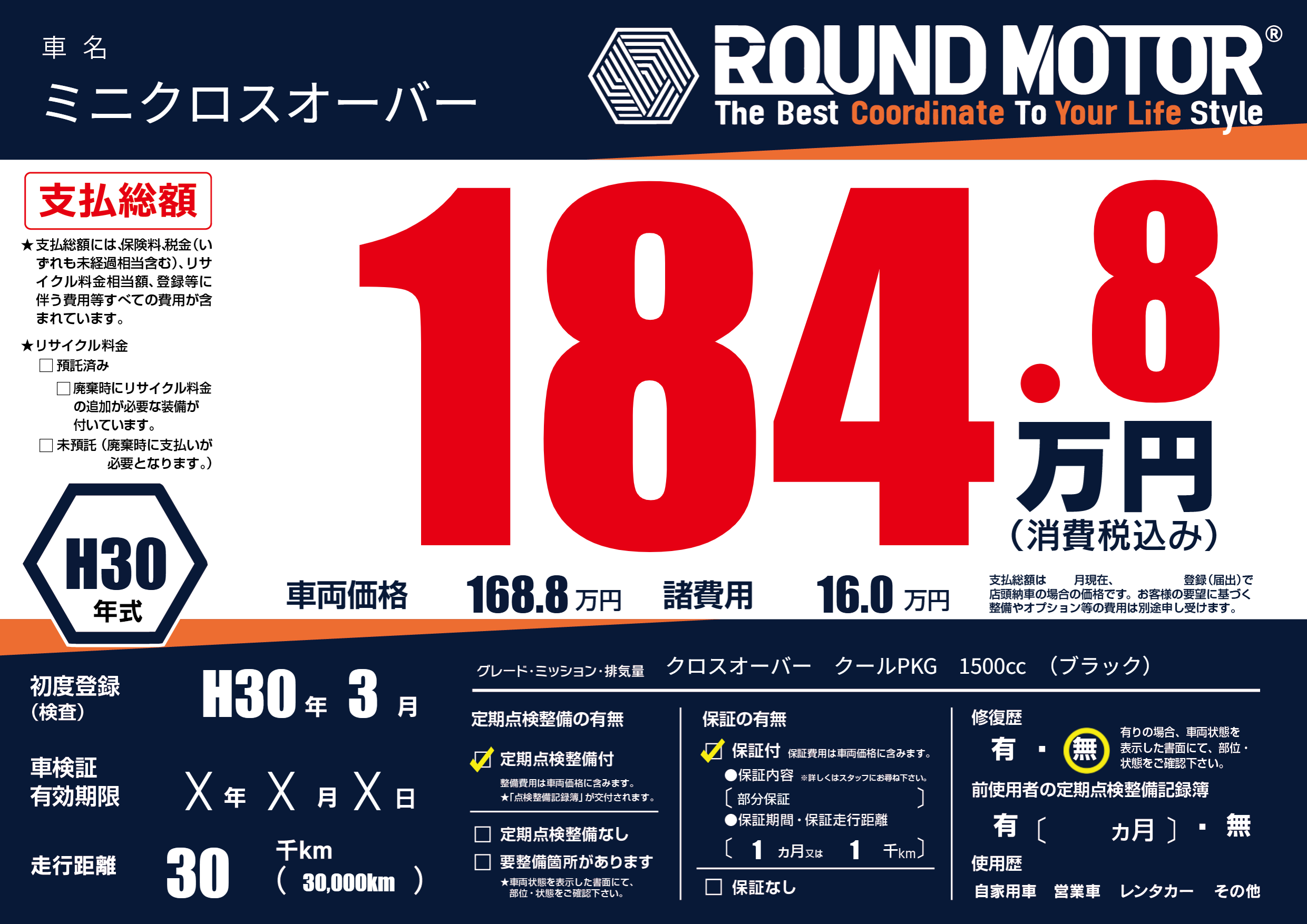 | 走行キロ | 3万km | ||