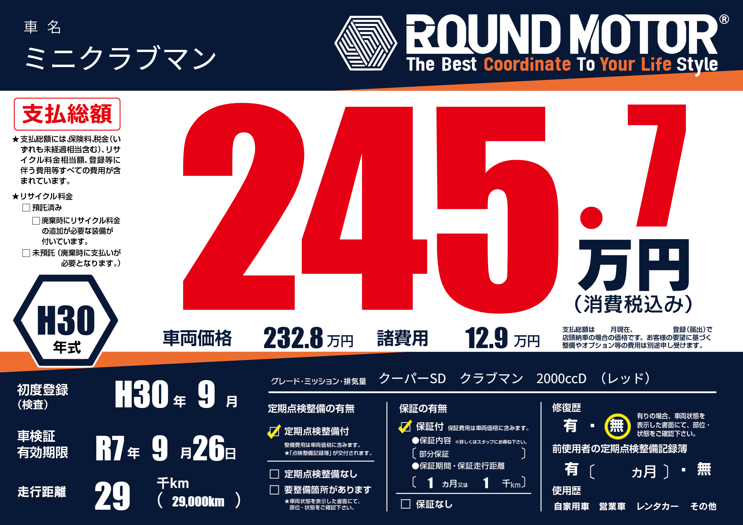 | 車名 | ミニクラブマン | グレード ミッション 排気量 |
