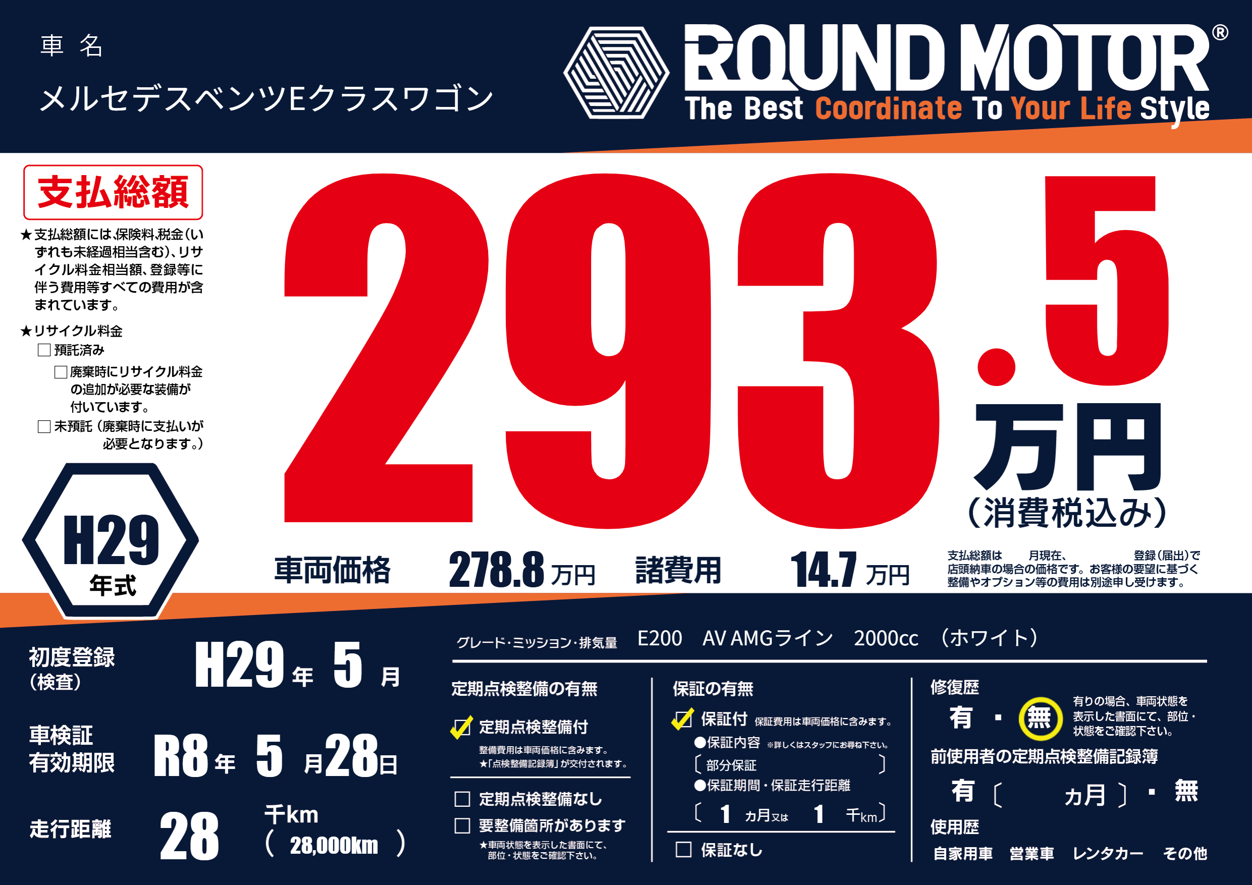 | 車名 | メルセデスベンツEクラスワゴン | グレード ミッション 排気量 |