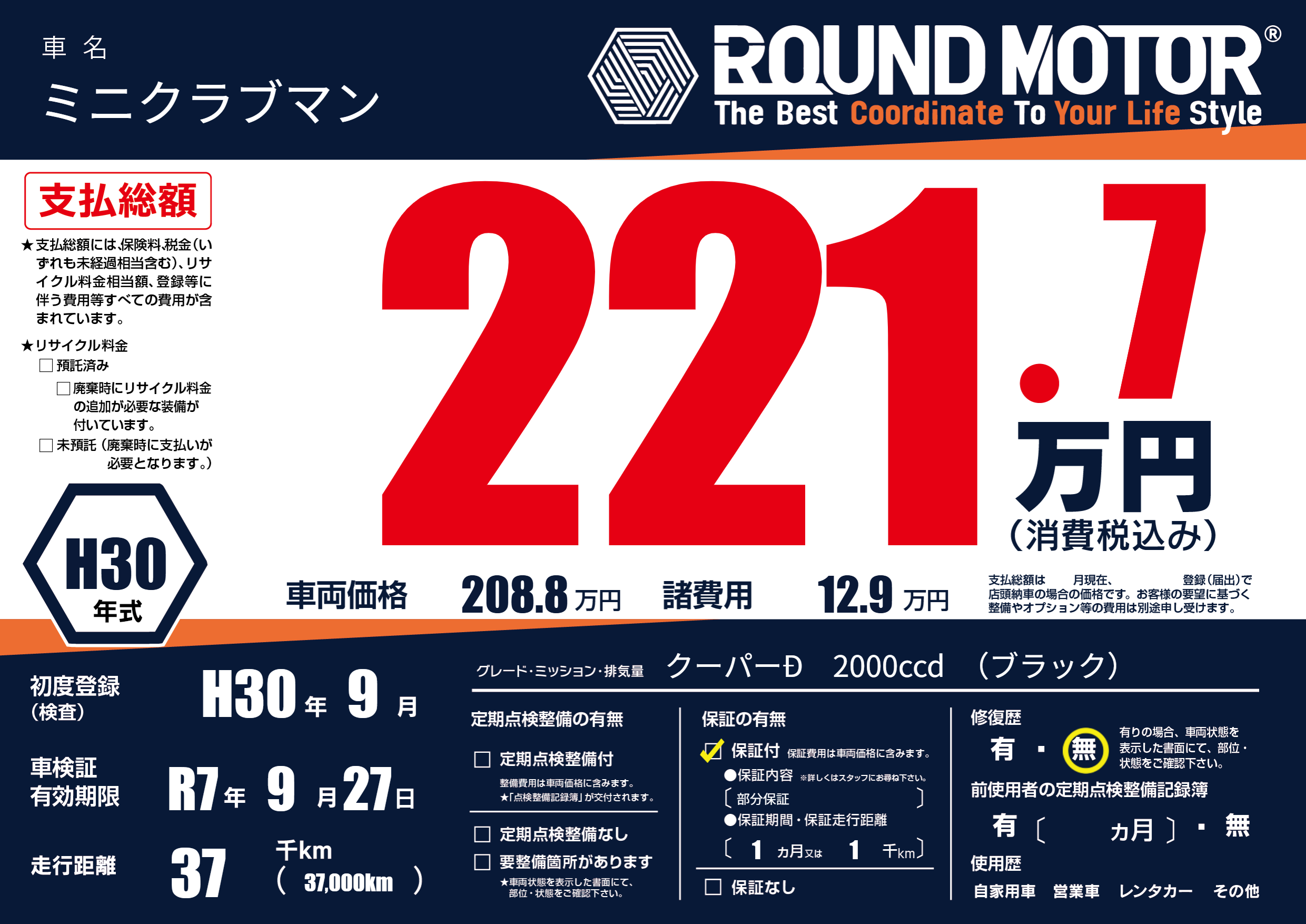 | 車名 | ミニクラブマン | グレード ミッション 排気量 |