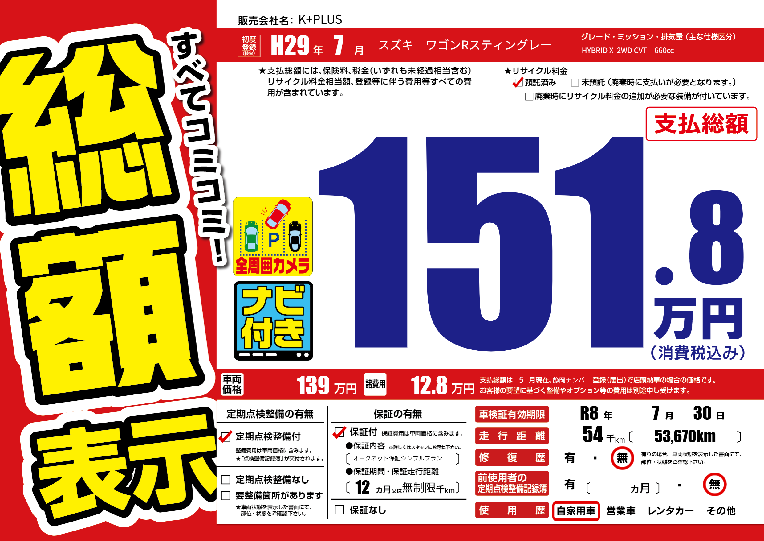 なし | 車検制限 | R8年7月30月 |