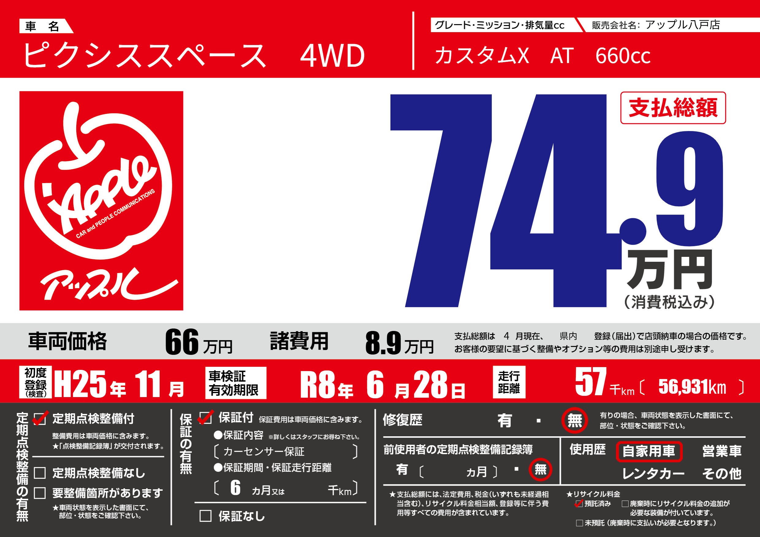 なし | 車検制限 | R8年6月28月 |