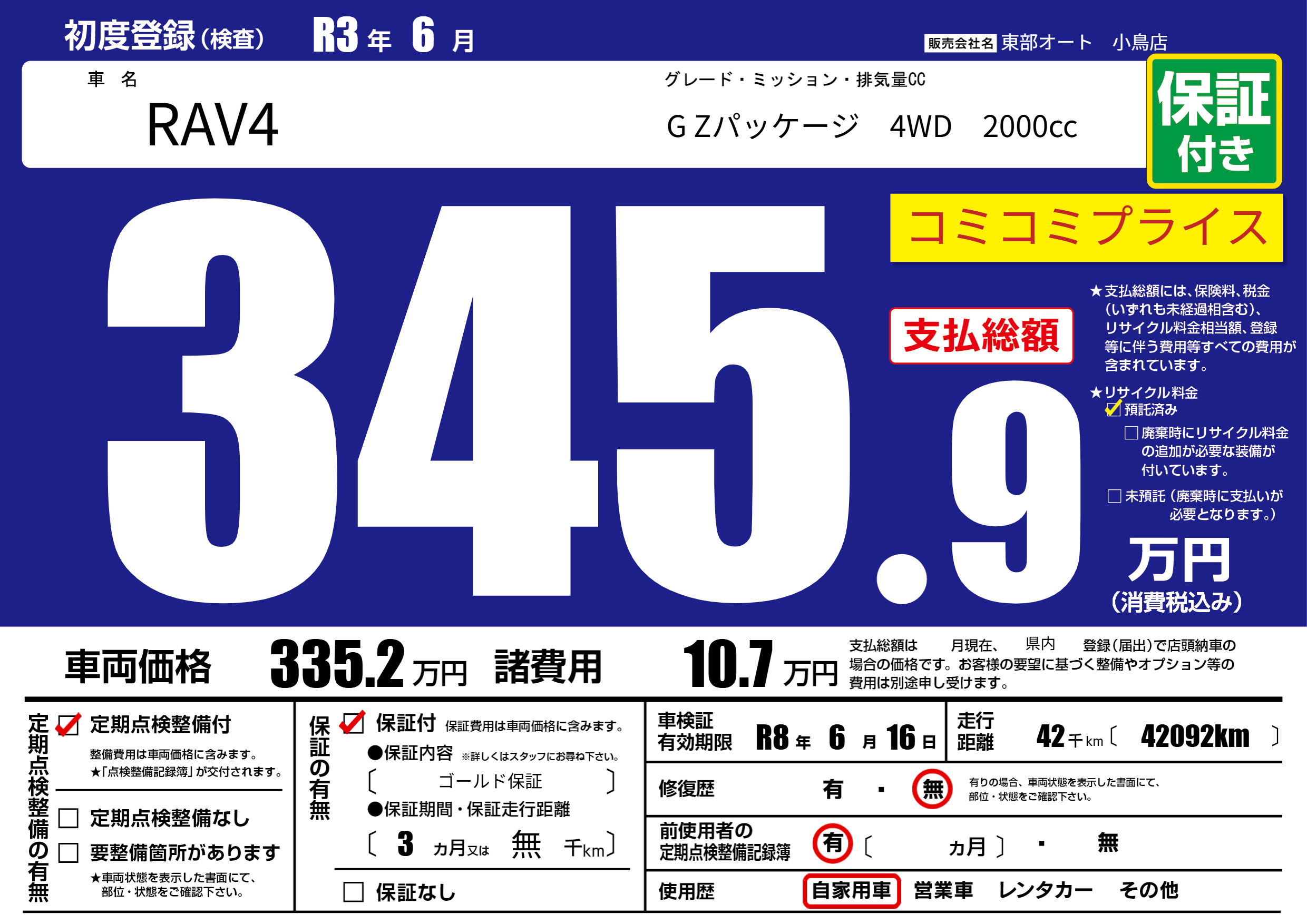 保証付き 保証内容( ゴールド保証) 3ヶ月または(無)千kmまで |