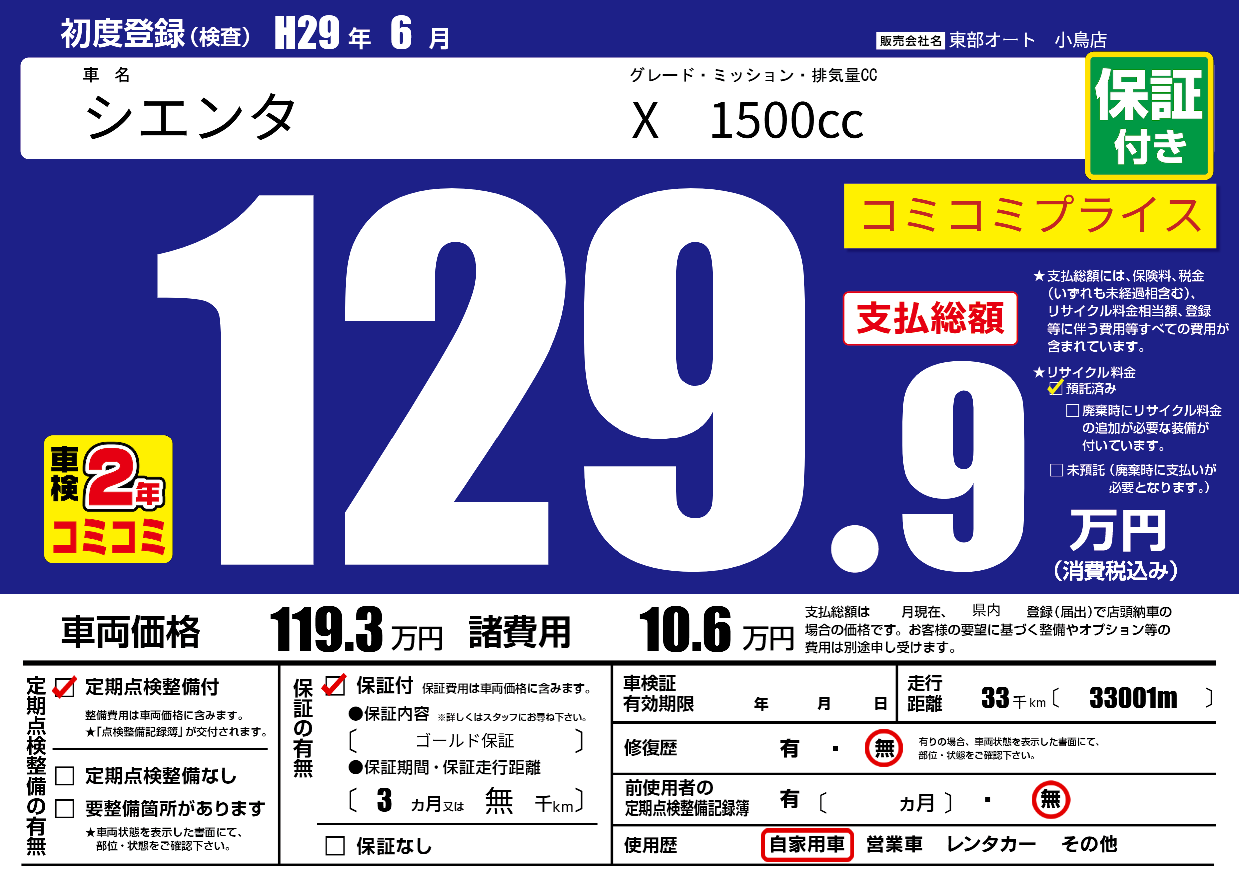 保証付き 保証内容( ゴールド保証) 3ヶ月または(無)千kmまで |
