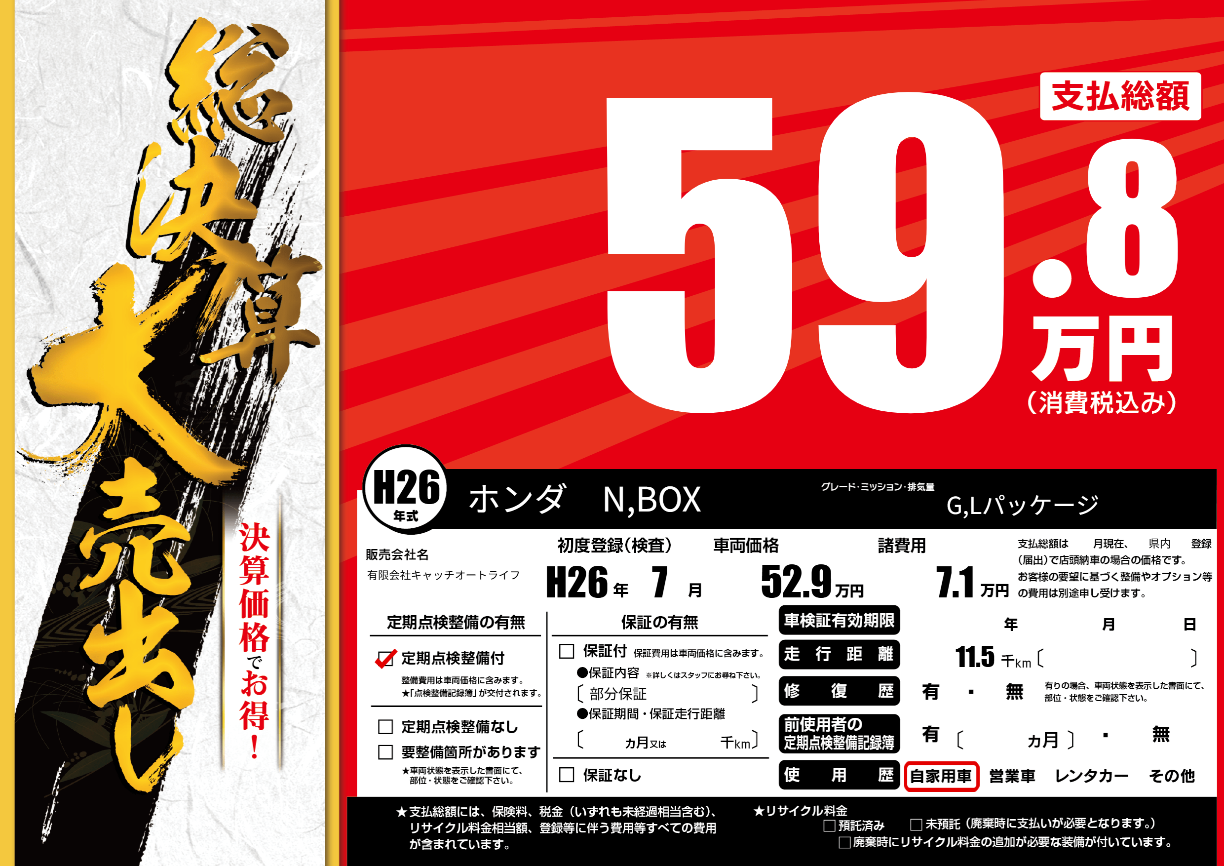 | 定期点検整備 | 定期点検整備あり | ||