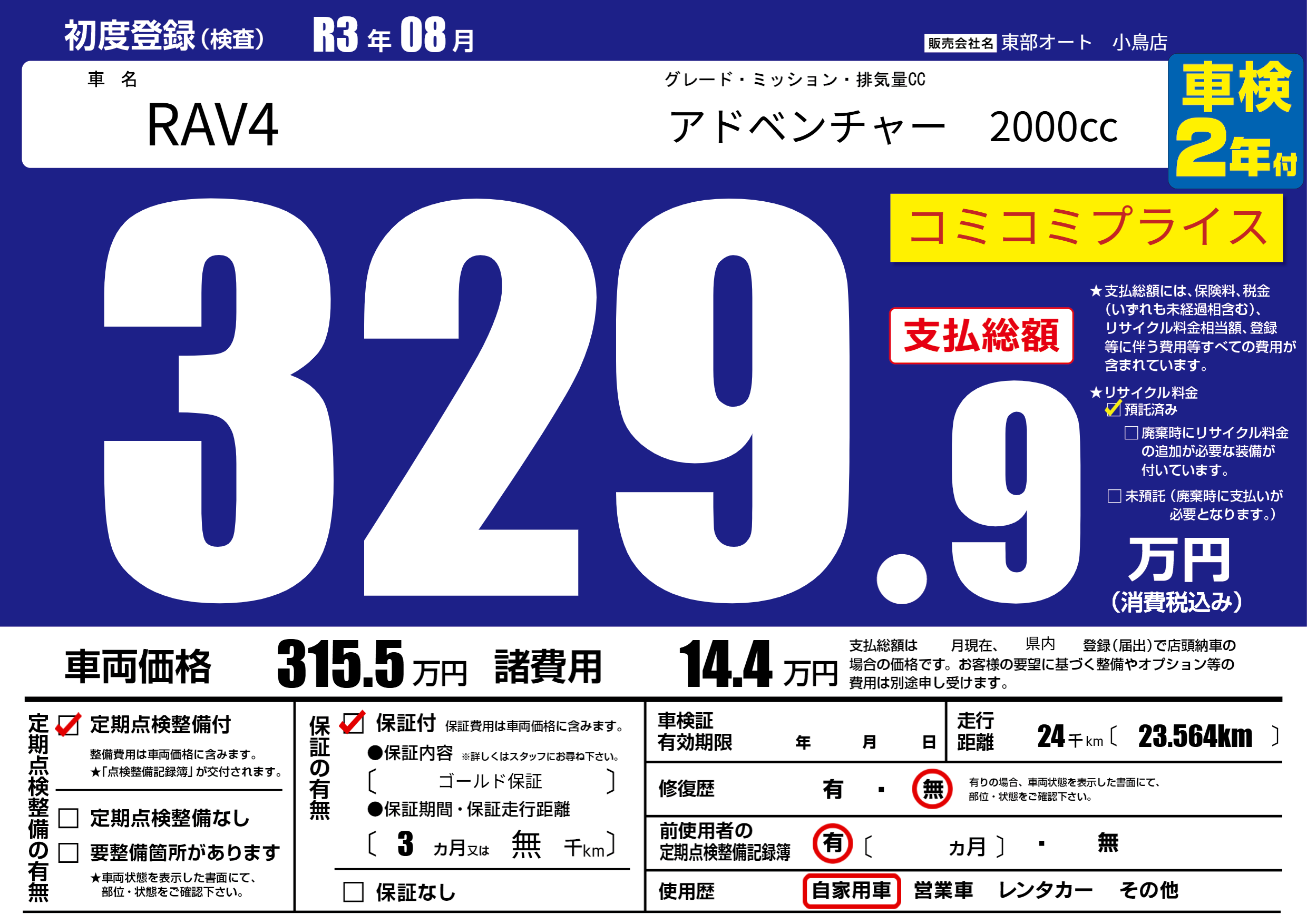 保証付き 保証内容( ゴールド保証) 3ヶ月または(無)千kmまで |
