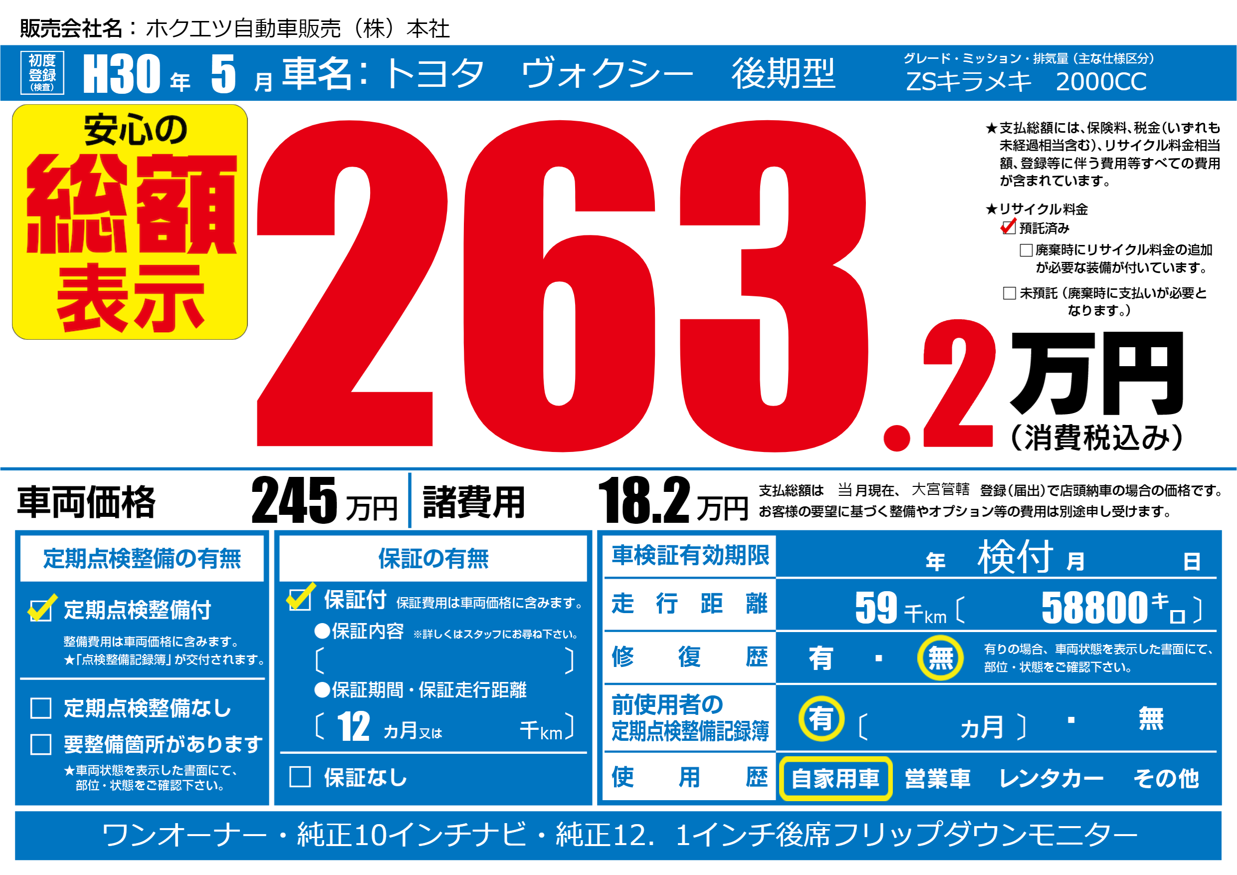 | 車名 | トヨタ ヴォクシー 後期型 | グレード ミッション 排気量 |