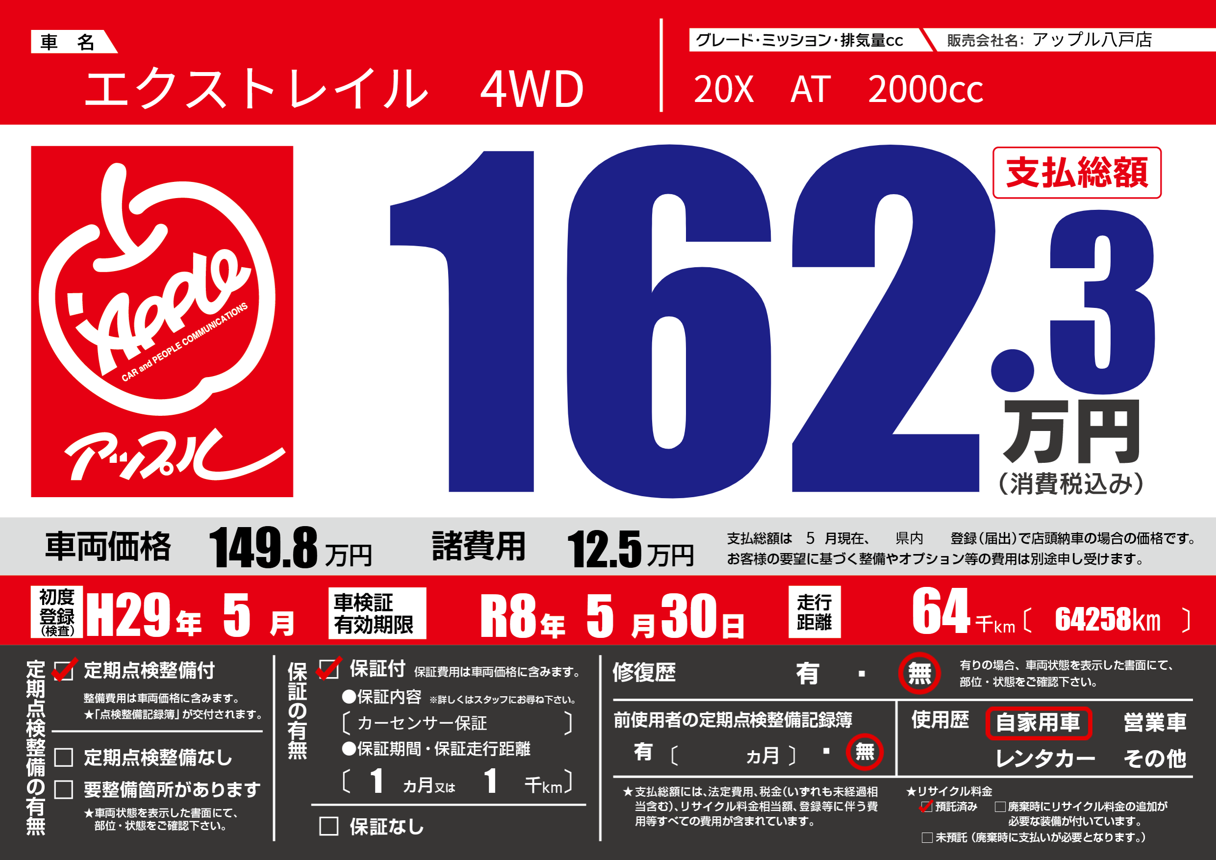 | 車検制限 | R8年 5月 30日 | ||