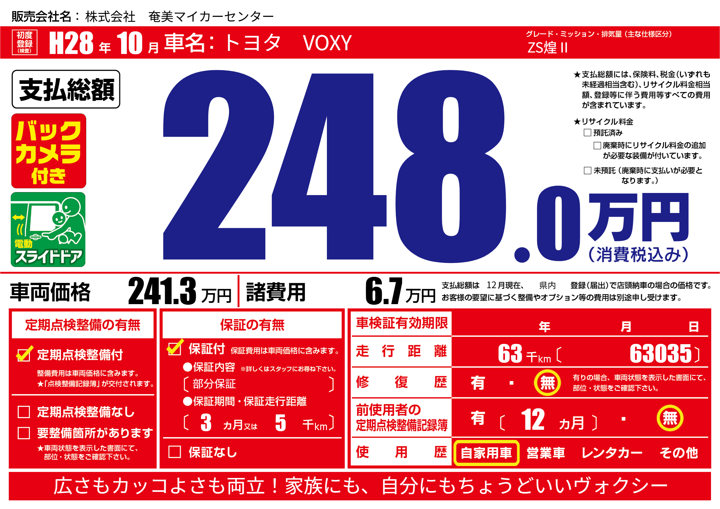 | 走行キロ | 6.3万km | 初年度登録 | H28年10月 |