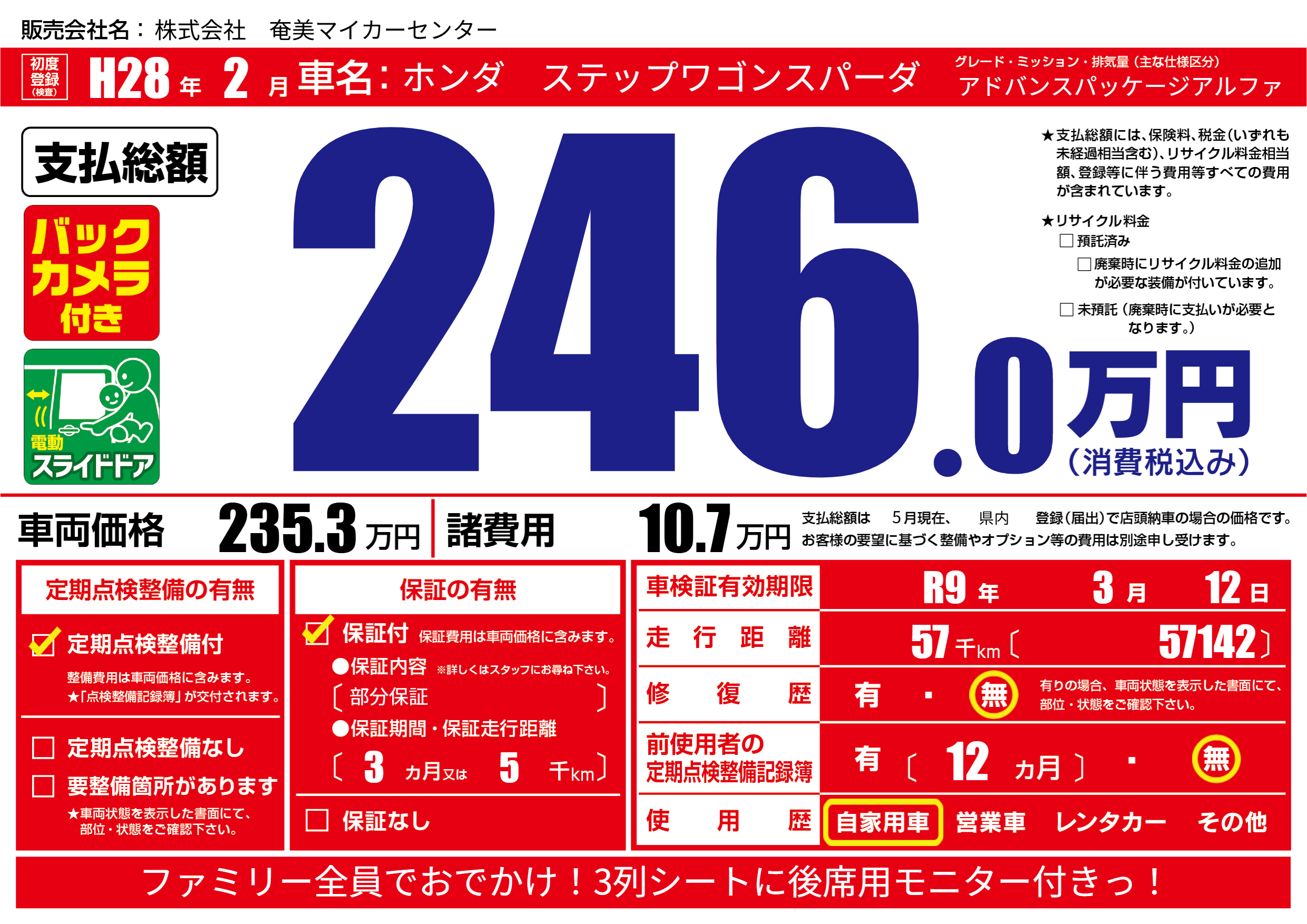 | 車検制限 | R9年 3月 12日 | ||