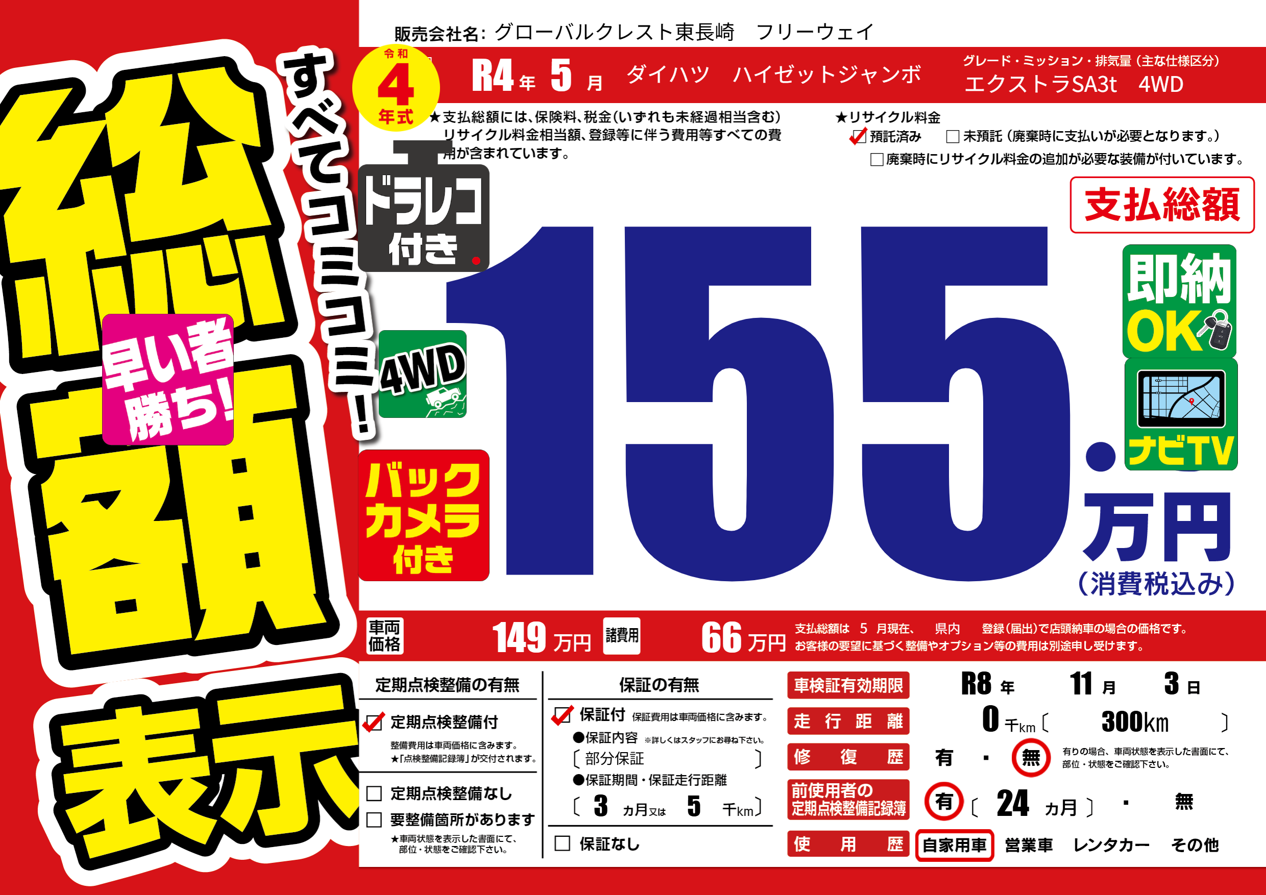 | 走行キロ | - | 初年度登録 | R4年5月 |