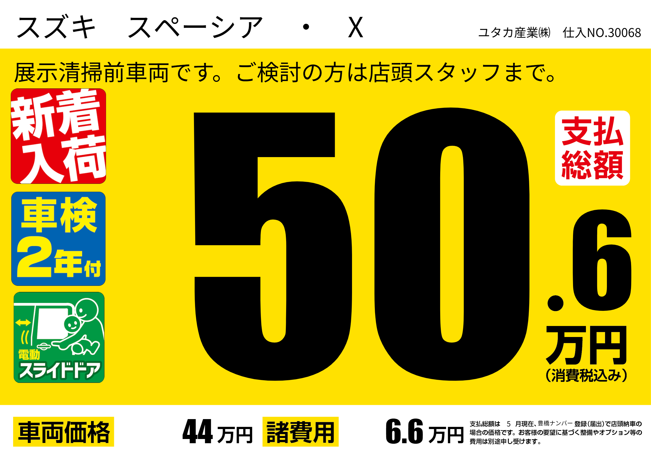 | 車名 | スズキ スペーシア ・ X | グレード ミッション 排気量 |