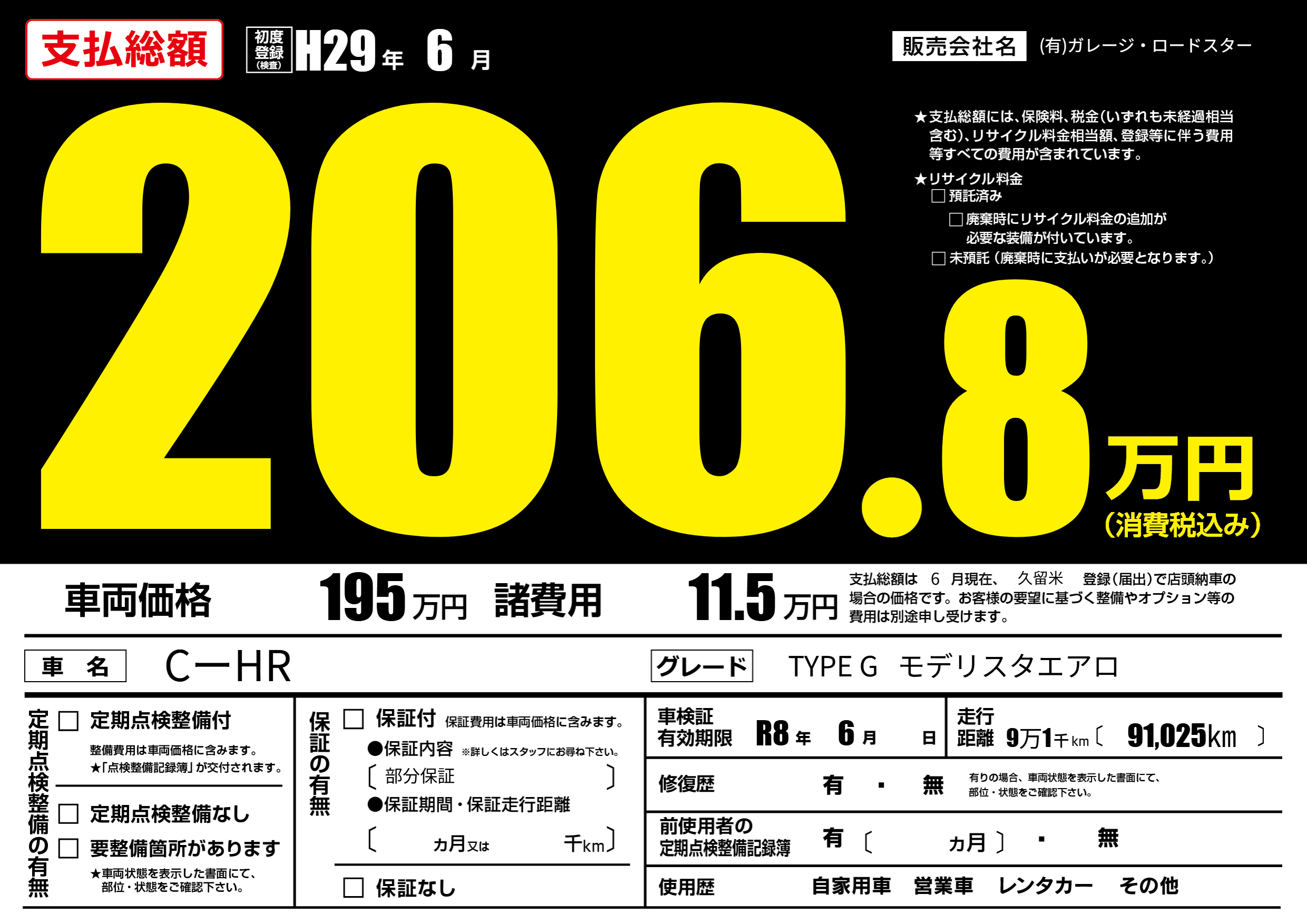| 車名 | CーHR | グレード ミッション 排気量 |