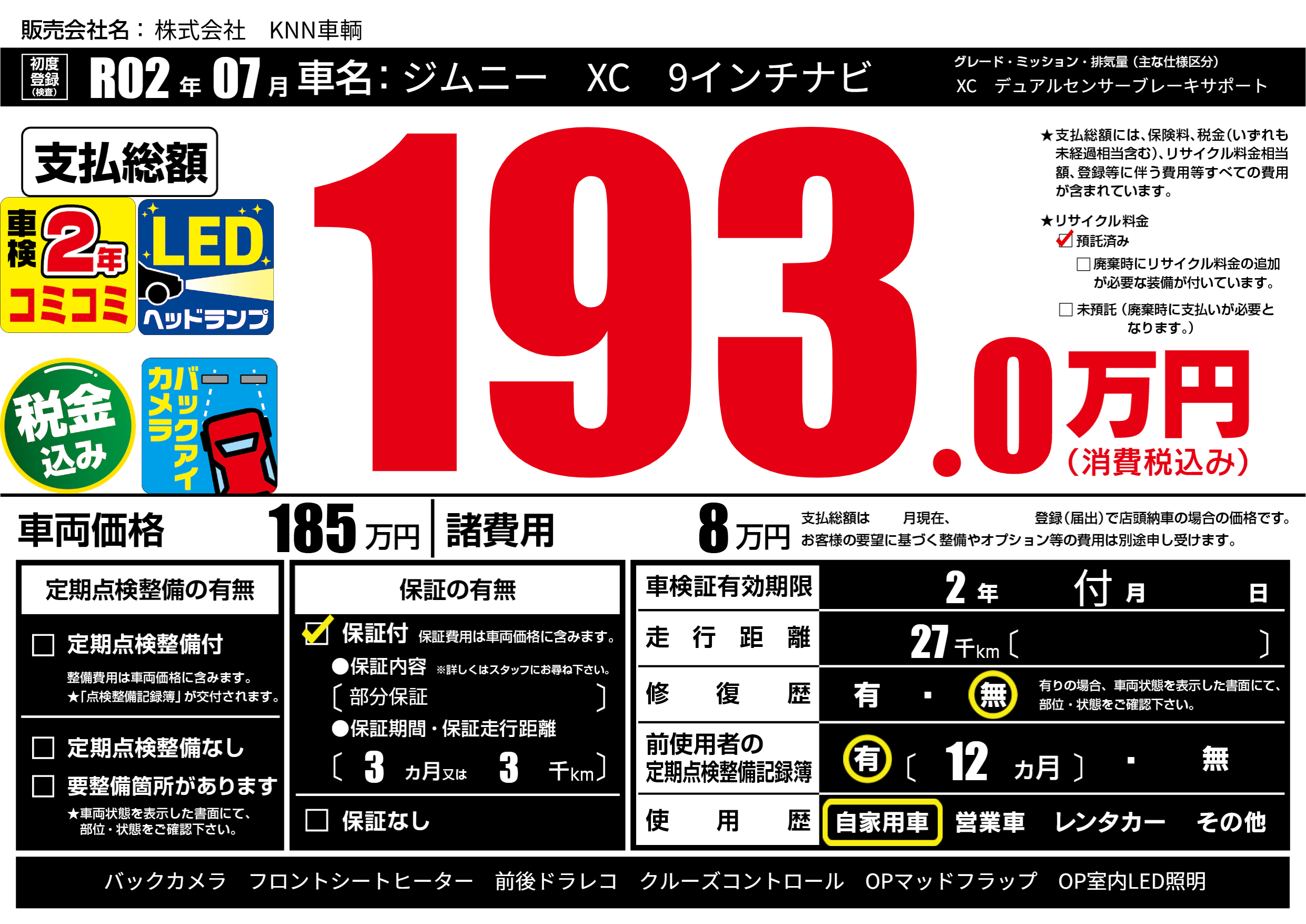 なし | 車検制限 | 2年付月---月 |