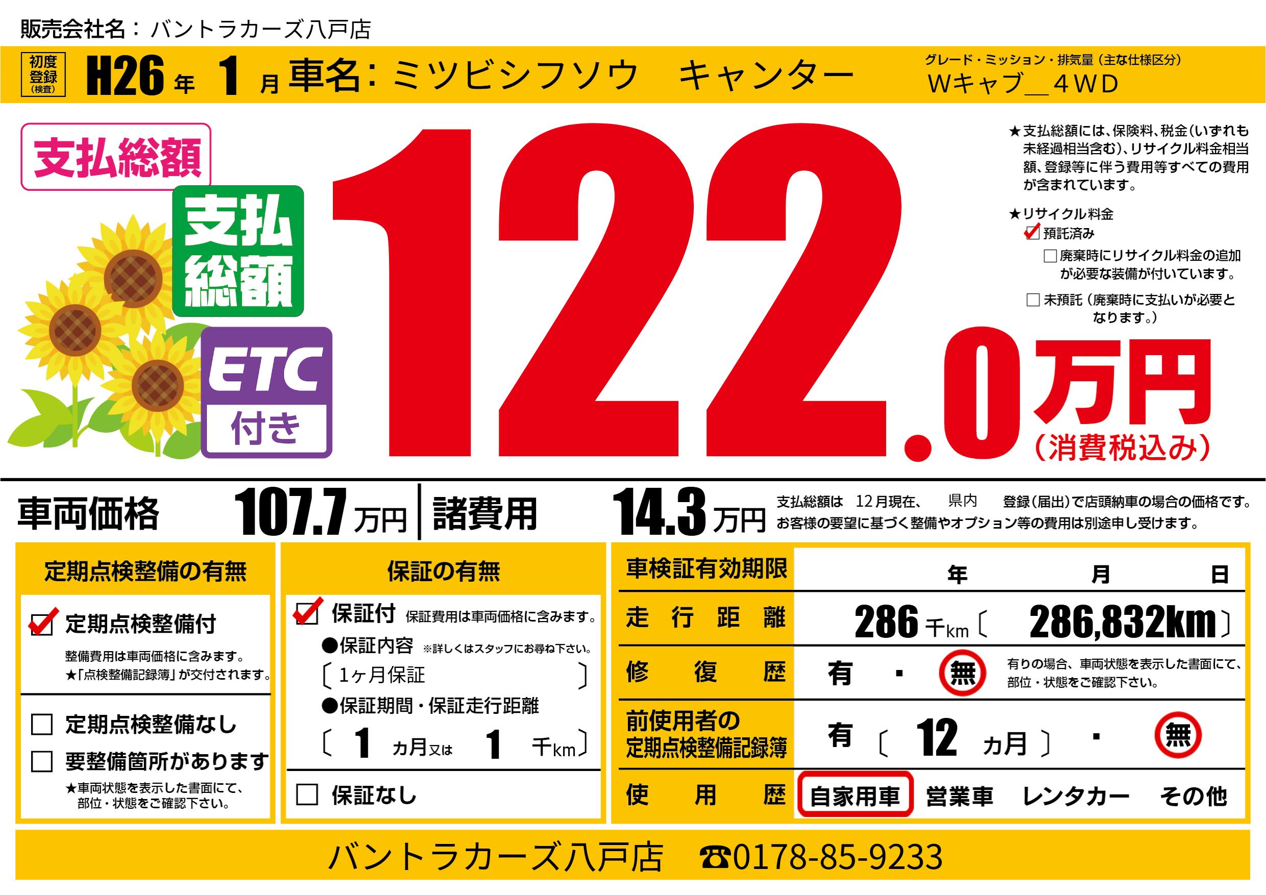 | 走行キロ | 28.6万km | ||