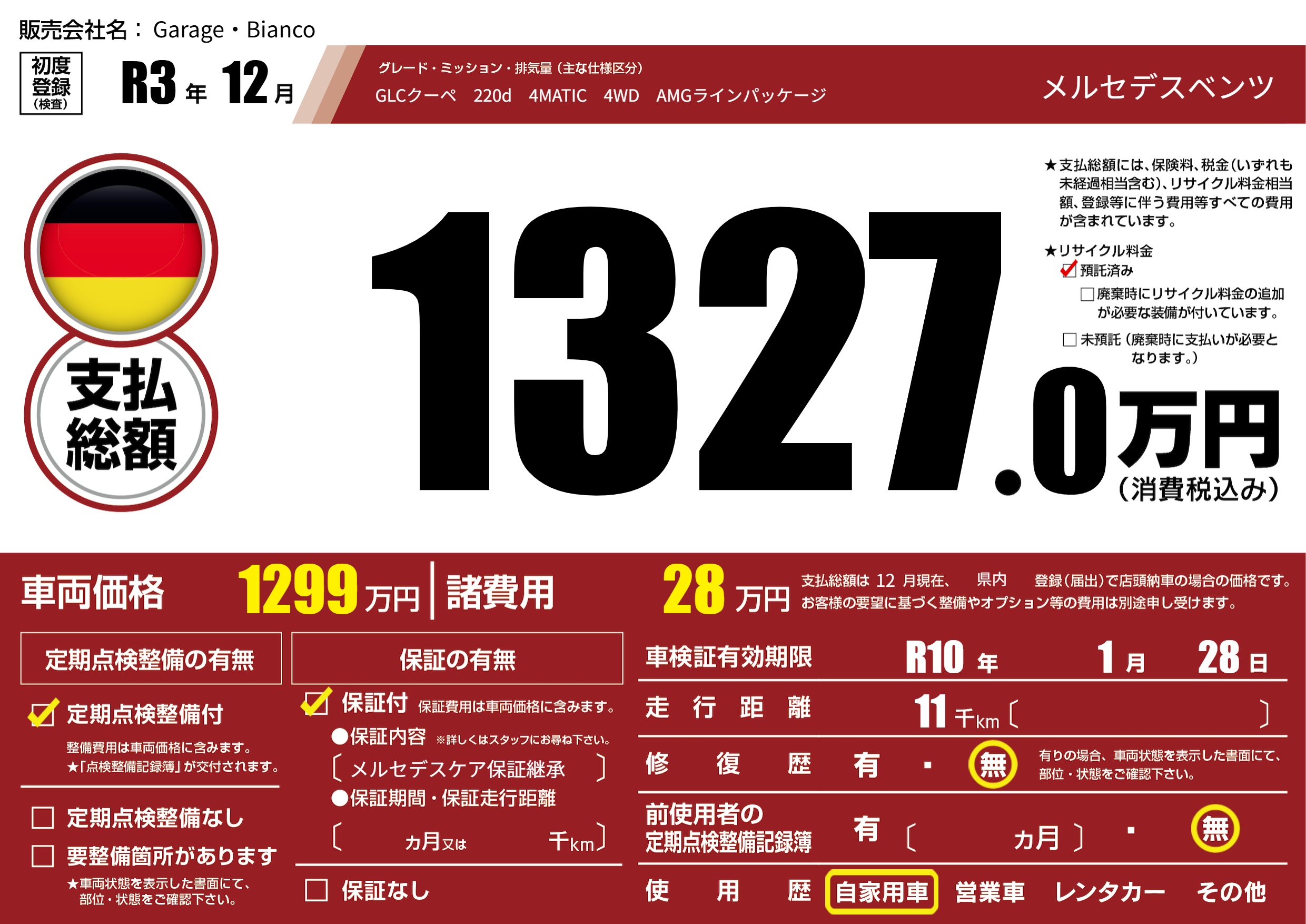 GLCクーペ 220d 4MATIC 4WD AMGラインパッケージ |