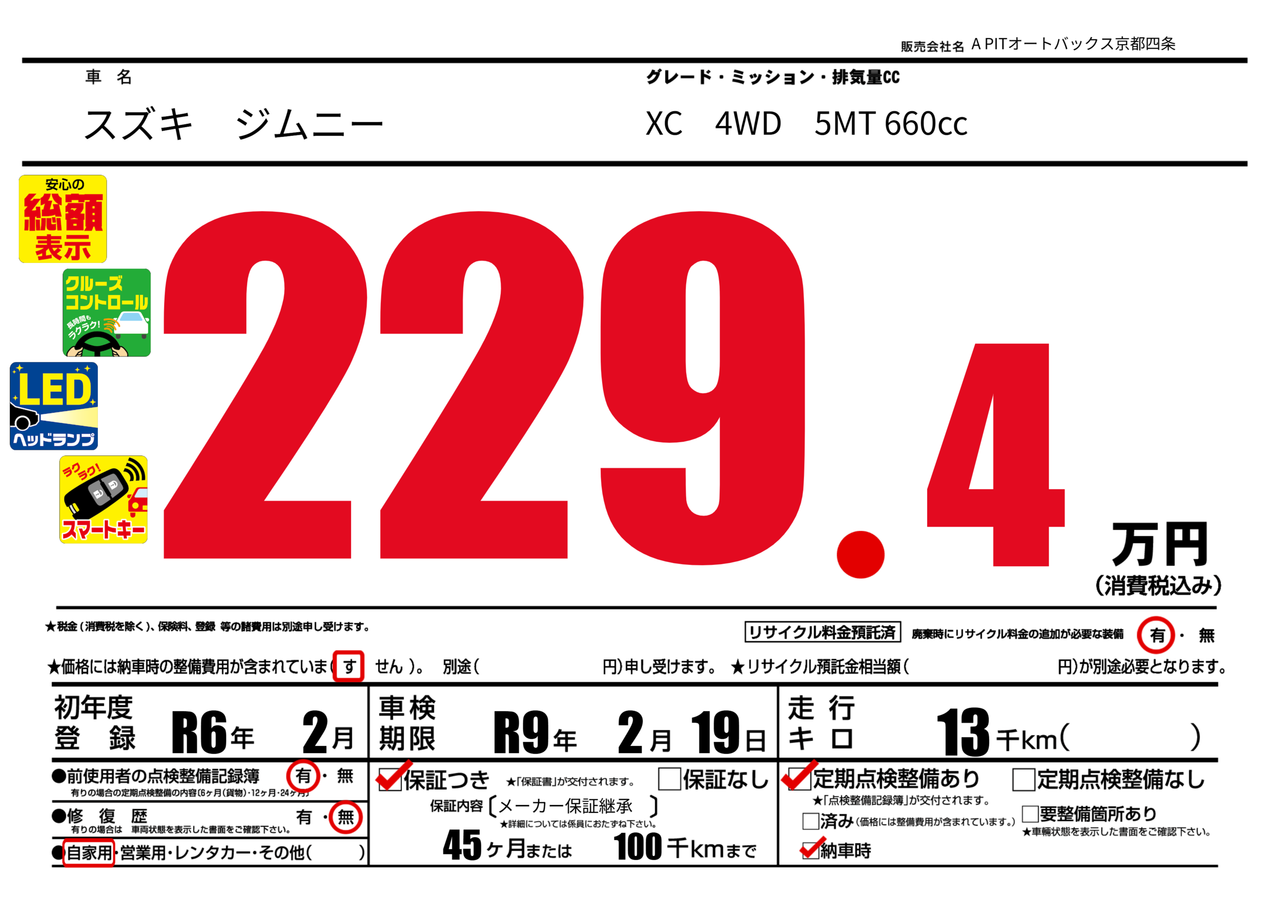 | 車検制限 | R9年 2月 19日 | ||