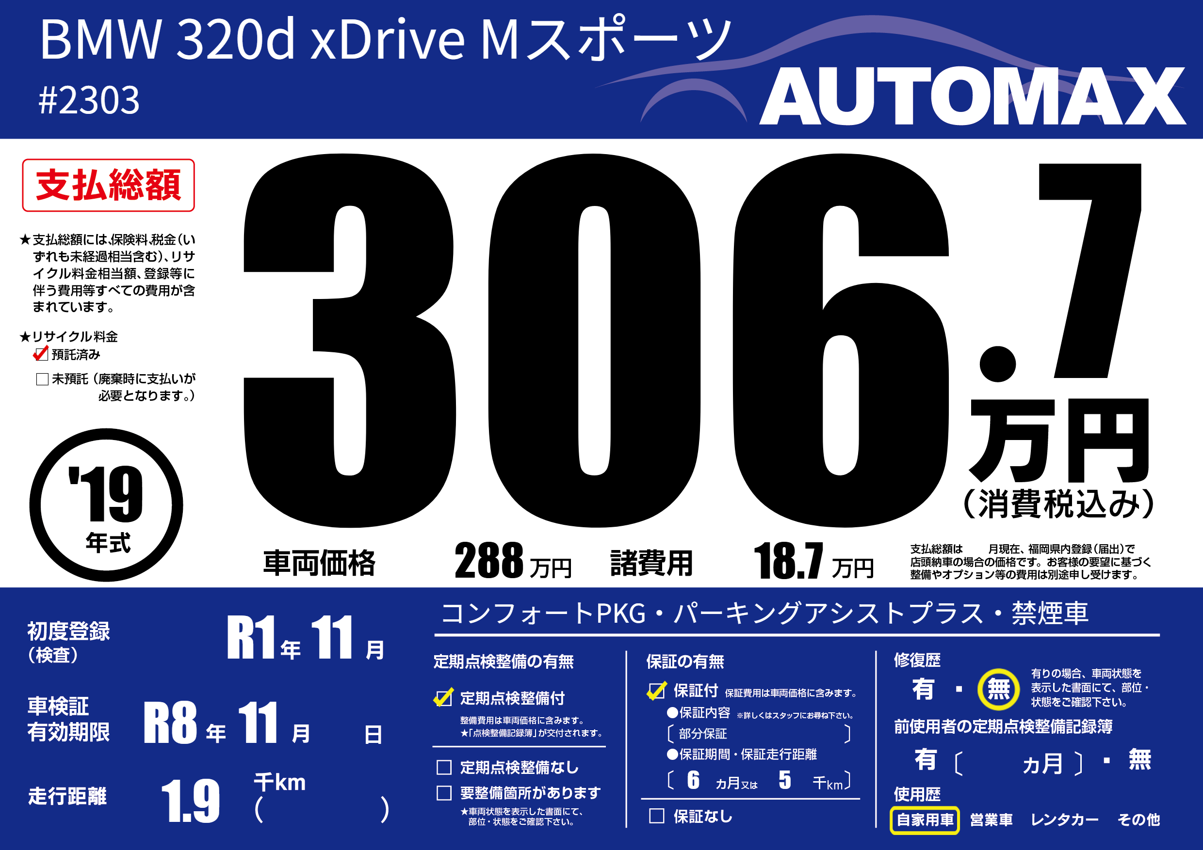 | 車検制限 | R8年 11月 - 日 | ||