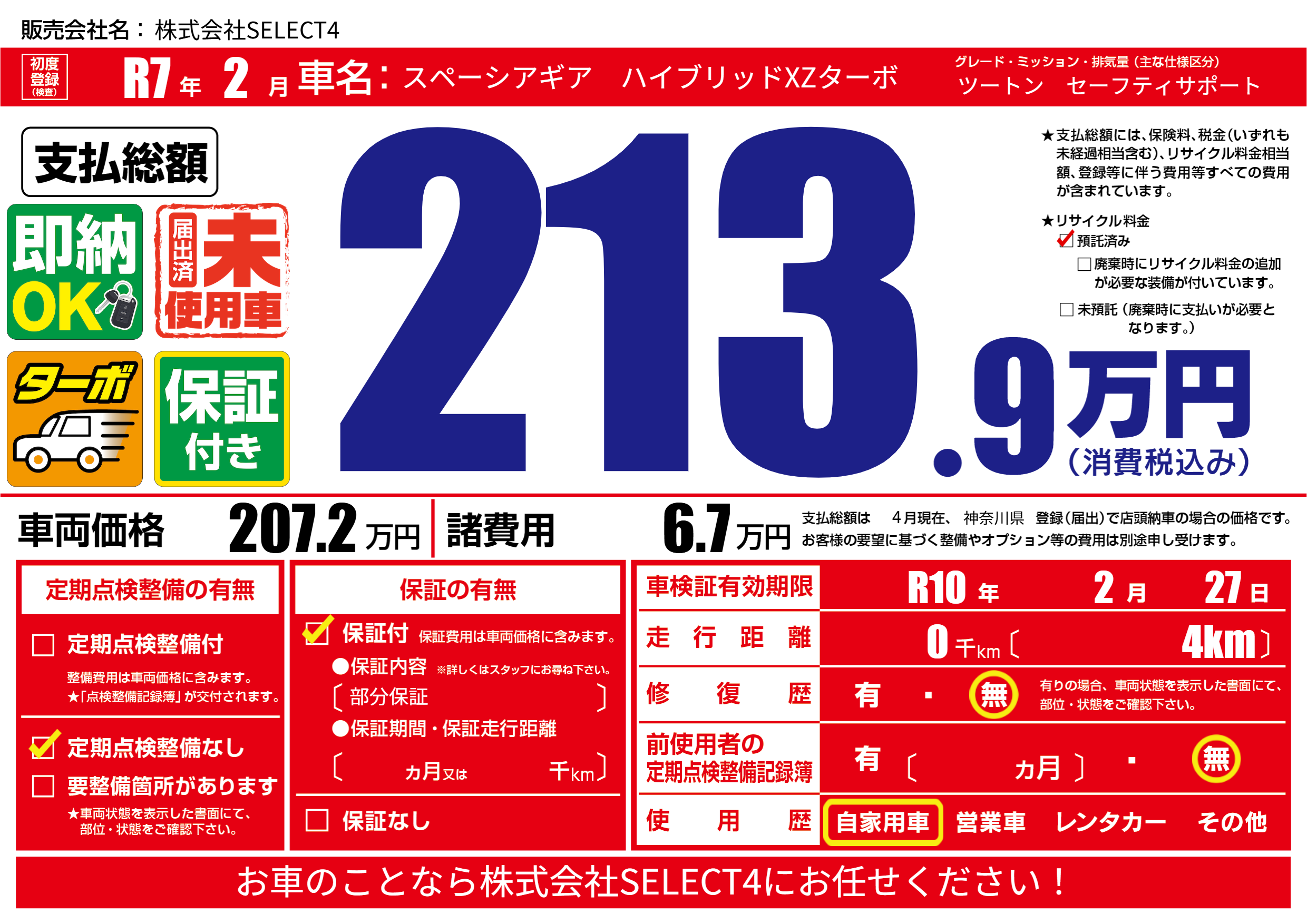 | 車検制限 | R10年 2月 27日 | ||