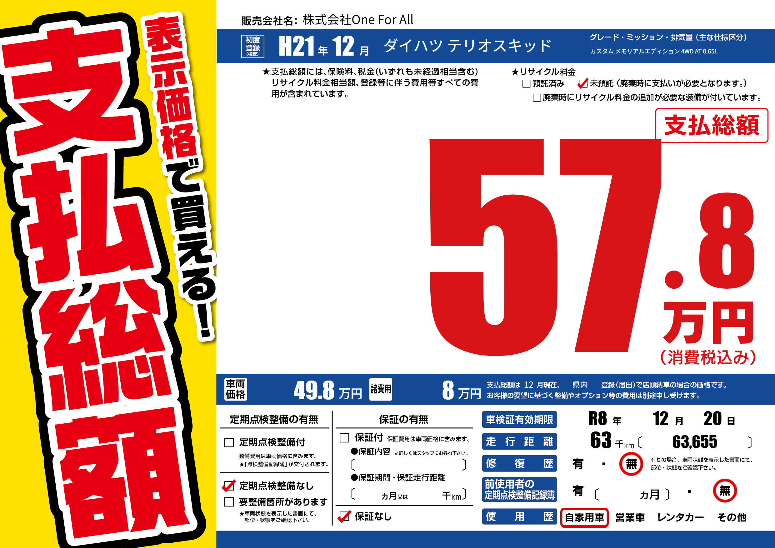 なし | 車検制限 | R8年12月20月 |