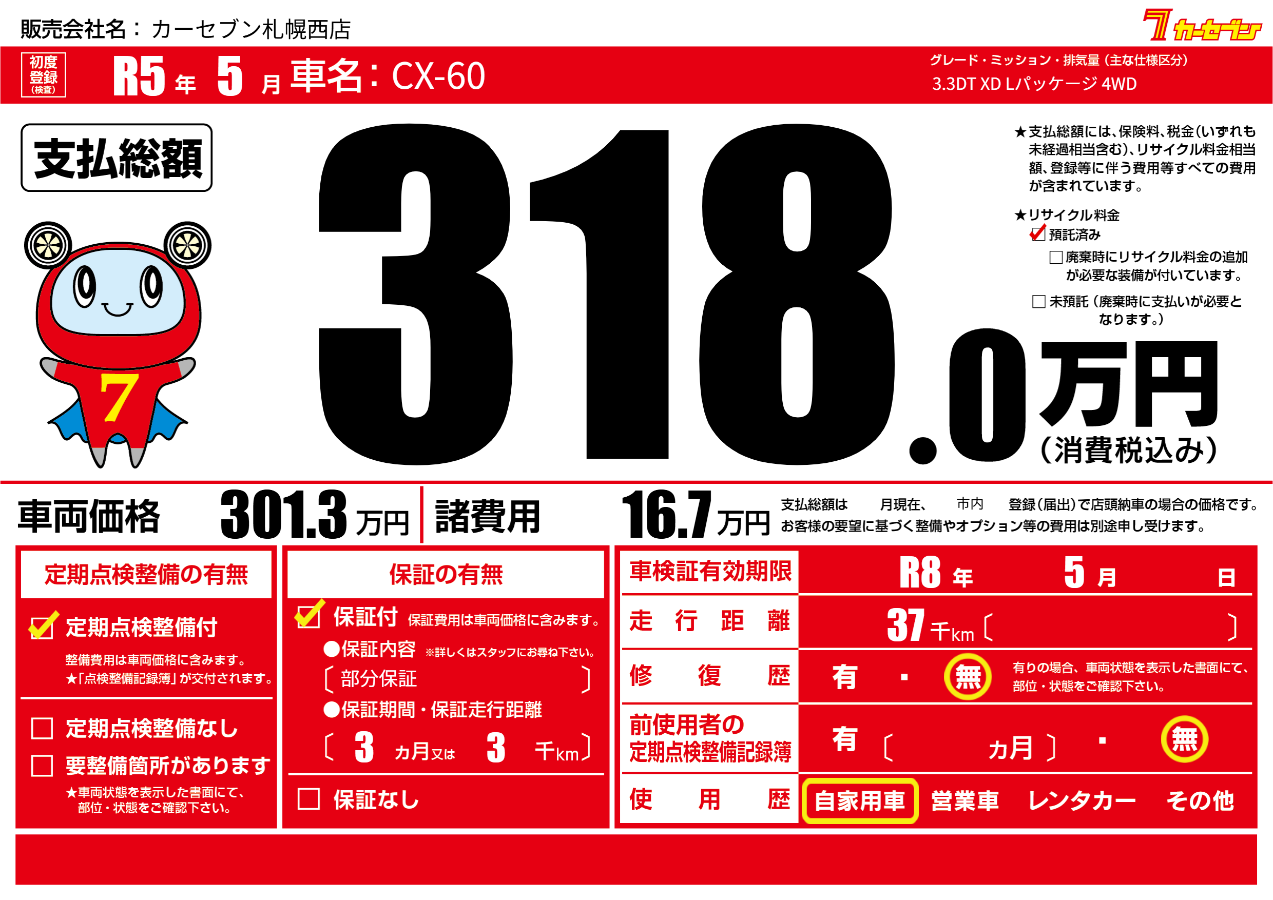 | 車名 | CX-60 | グレード ミッション 排気量 |