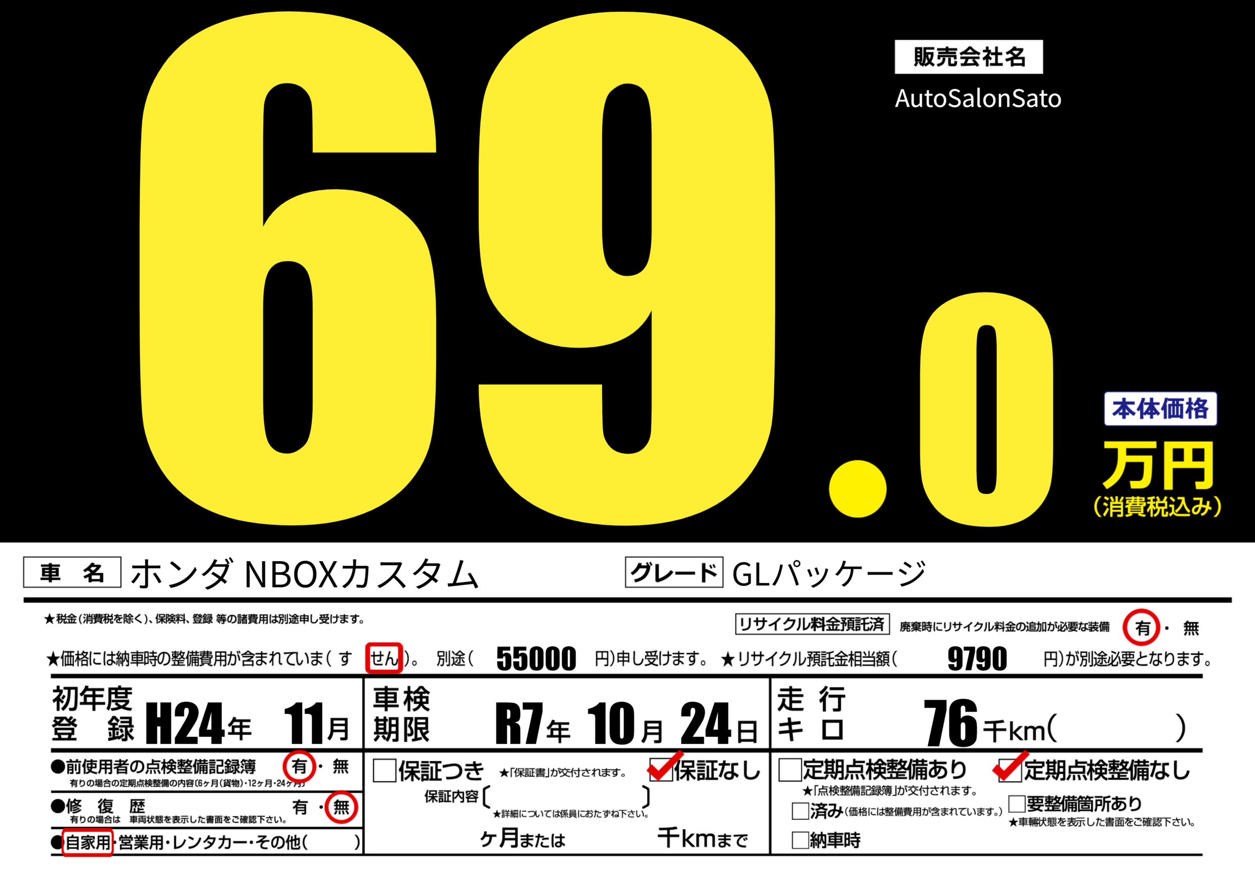 | 走行キロ | 7.6万km | 初年度登録 | H24年11月 |
