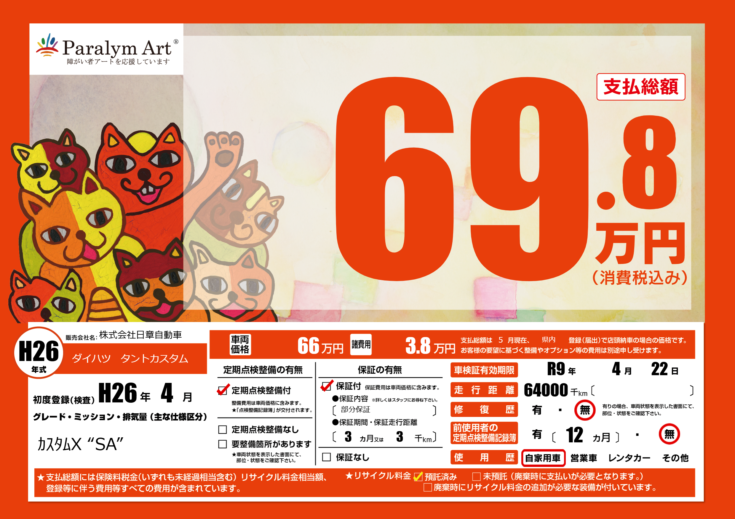 | 走行キロ | 6400万km | 初年度登録 | H26年4月 |