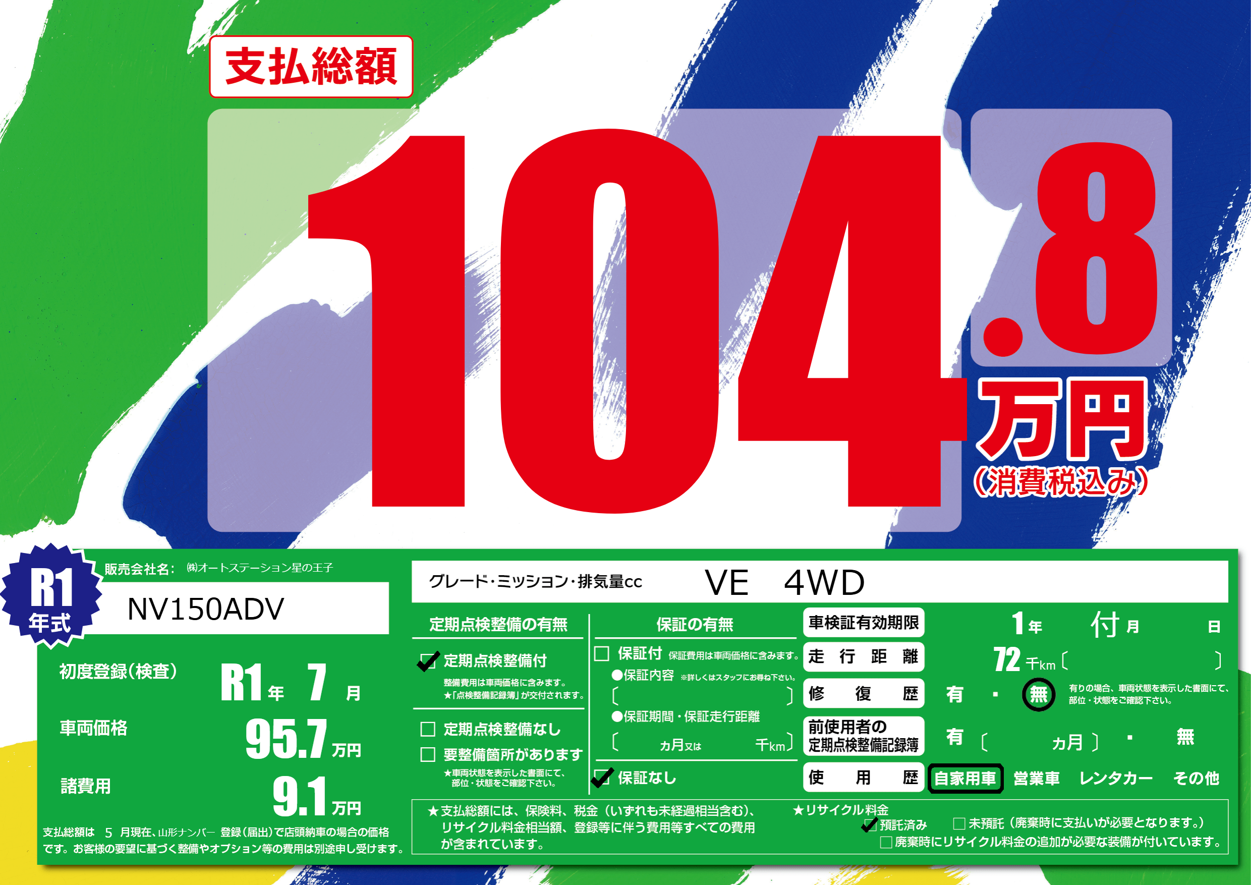 | 走行キロ | 7.2万km | 初年度登録 | R1年7月 |