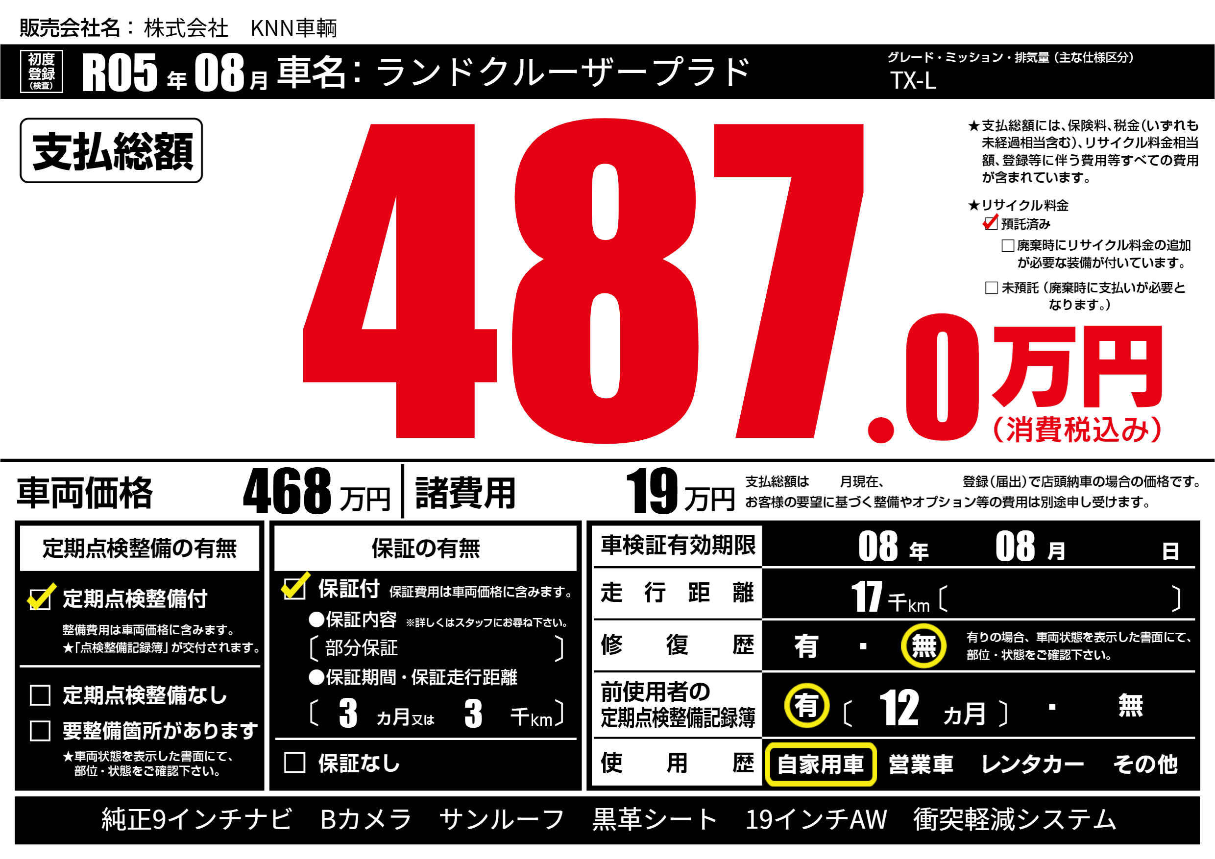 | 車名 | ランドクルーザープラド | グレード ミッション 排気量 |