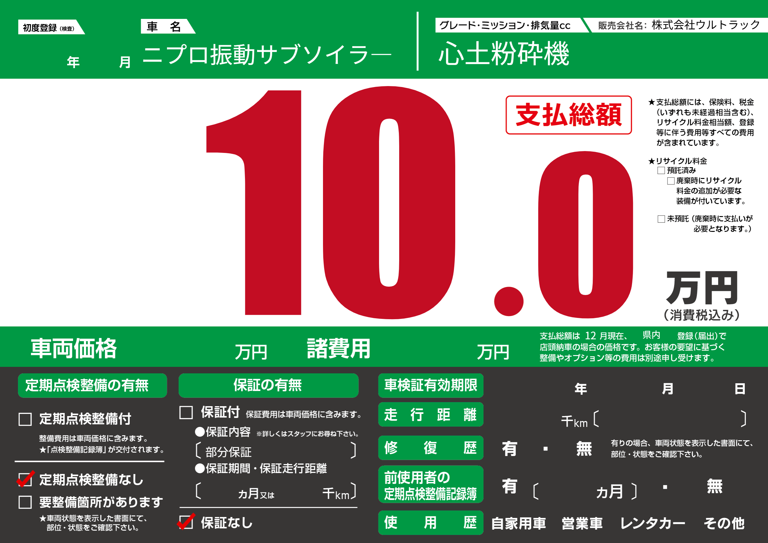 | 車名 | ニプロ振動サブソイラ― | グレード ミッション 排気量 |
