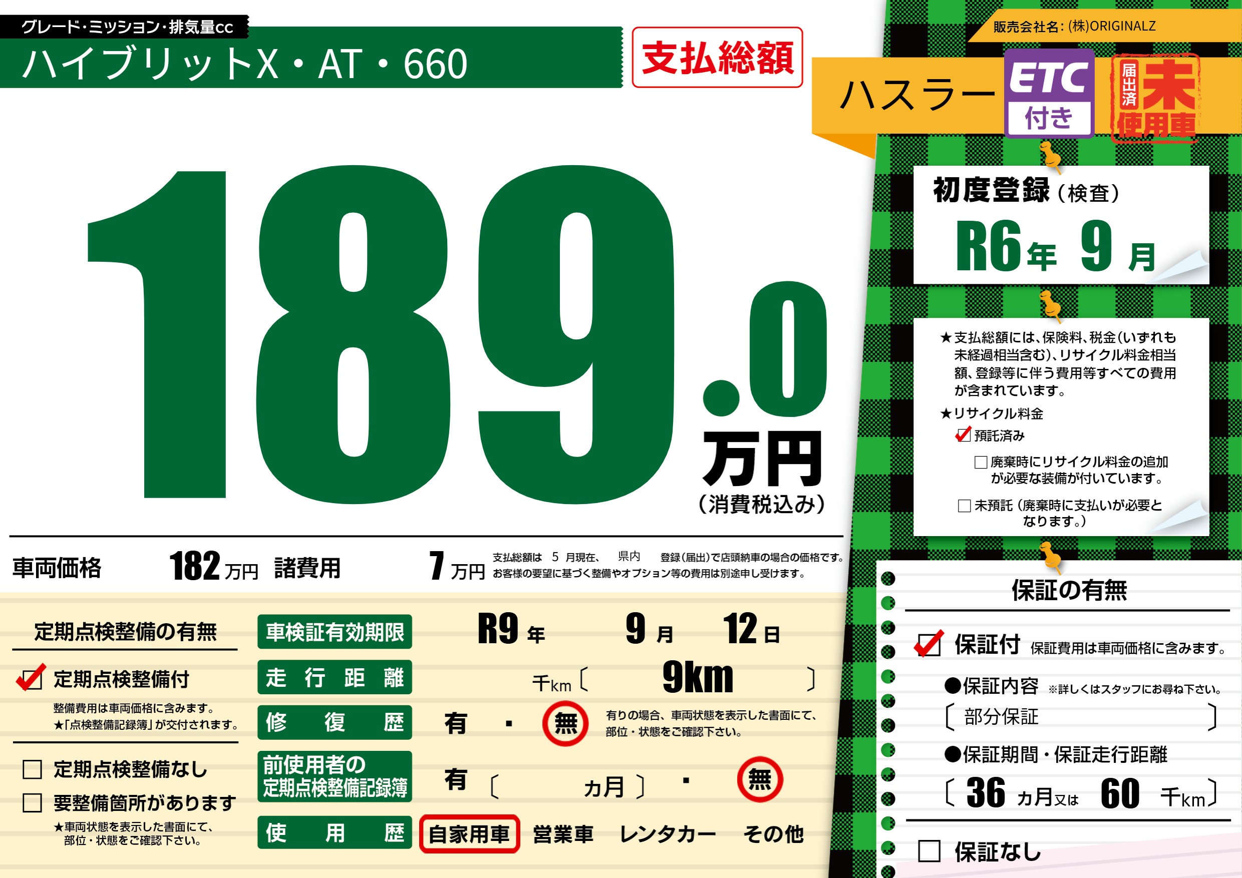 なし | 車検制限 | R9年9月12月 |