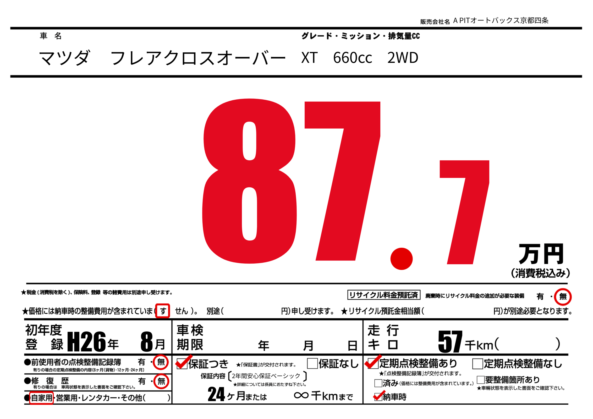 | 車名 | マツダ フレアクロスオーバー | グレード ミッション 排気量 |