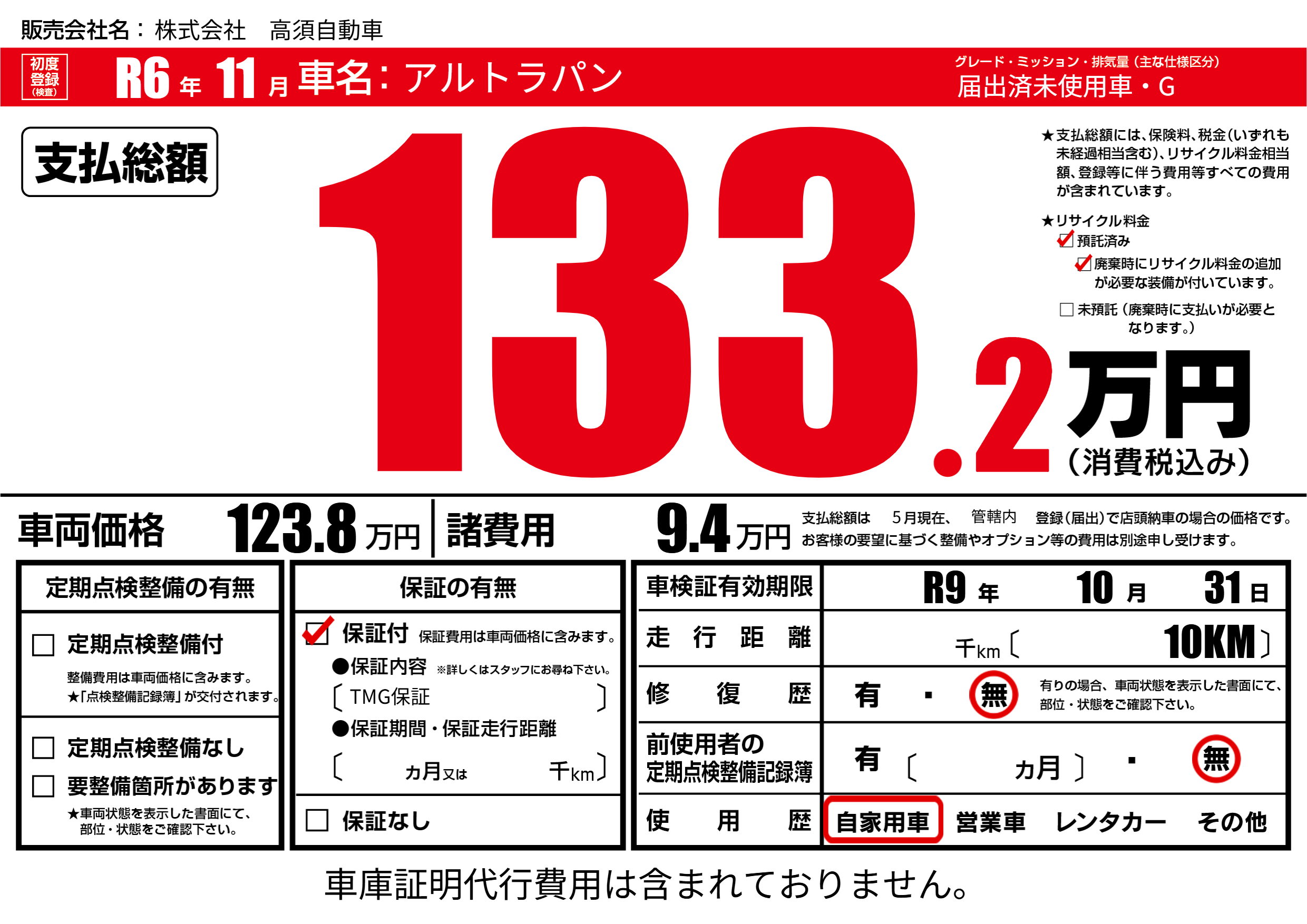 なし | 車検制限 | R9年10月31月 |