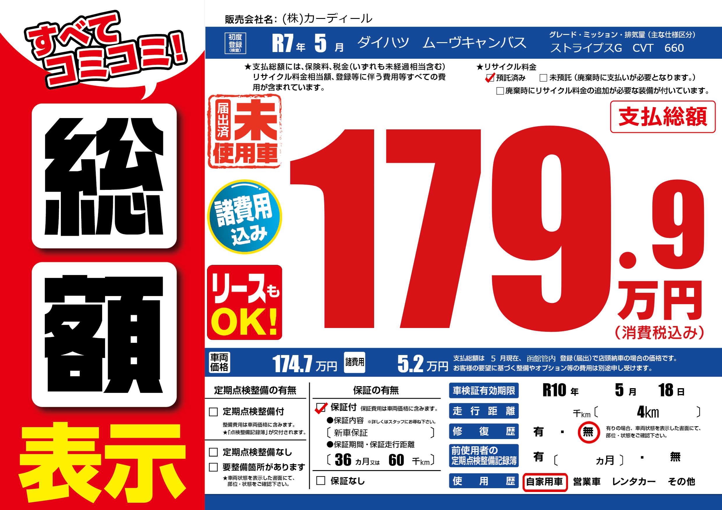 | 走行キロ | - | 初年度登録 | R7年5月 |