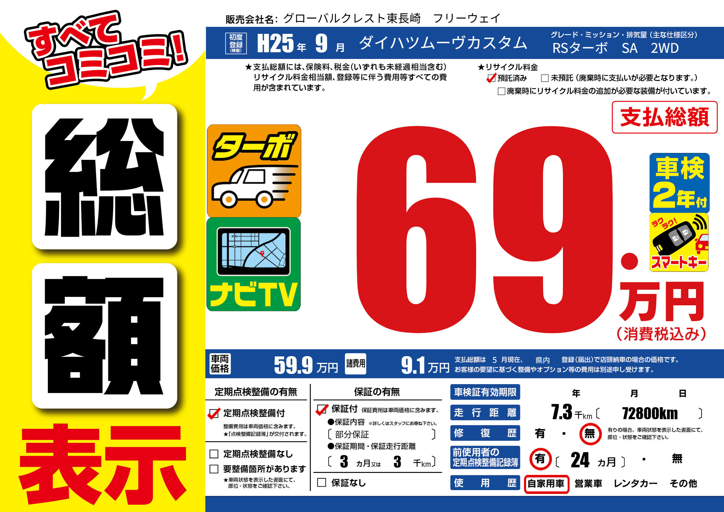 | 車名 | ダイハツムーヴカスタム | グレード ミッション 排気量 |